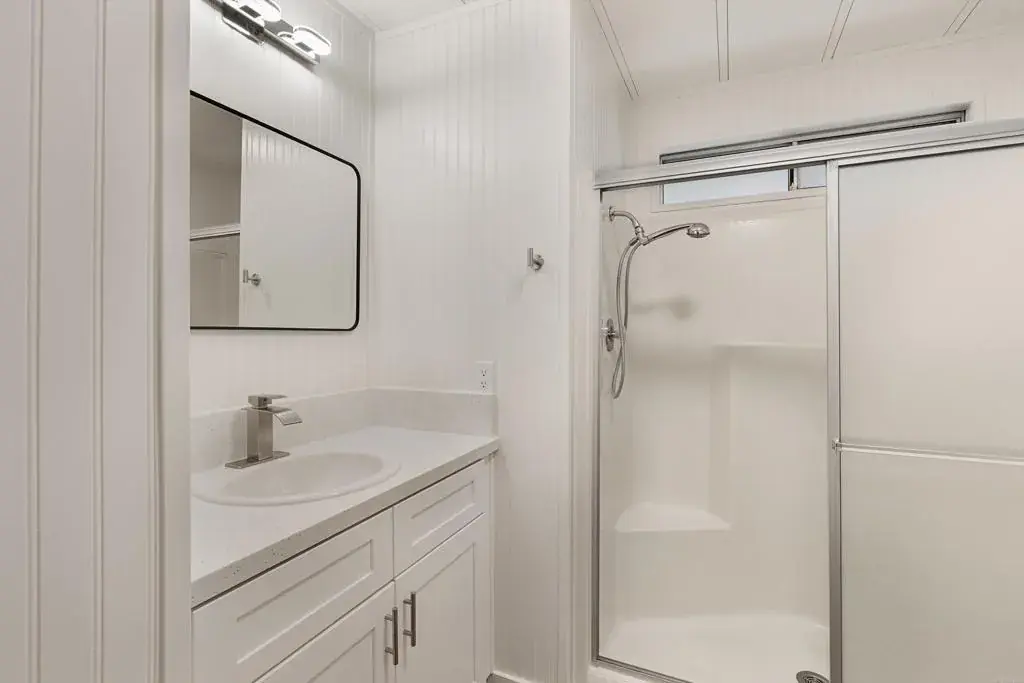 Remodeled home + NEW roof located in a well kept 55+ park near shopping, Costco, TriCity Medical, highways 78 & 5, Carlsbad and Oceanside beaches, shopping mall & more! Interior has been fully remodeled with a brand new Kitchen and Bathrooms, new flooring throughout (LVP in the living and wet areas and carpet for comfort in the bedrooms), new paint and fixtures and so much more! The Primary Suite offers double closets as well as dual sinks in the ensuite bathroom. The enclosed porch is not included in the listed square footage but offers additional usable space for hobbies, office, or storage. Low maintenance yard with garden box and storage shed. Conveniently located near guest parking. This is a 55+ park w/ amenities including a pool, spa, billiards, monthly activities and more. The monthly space rent is $1,350 per month. Please see attached document in MLS that outlines financial prerequisites to qualify for residency. Note: Some photos representing this listing have been virtually staged.