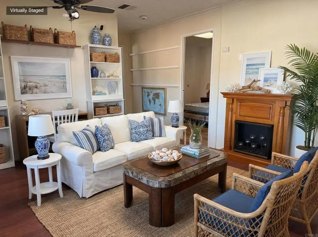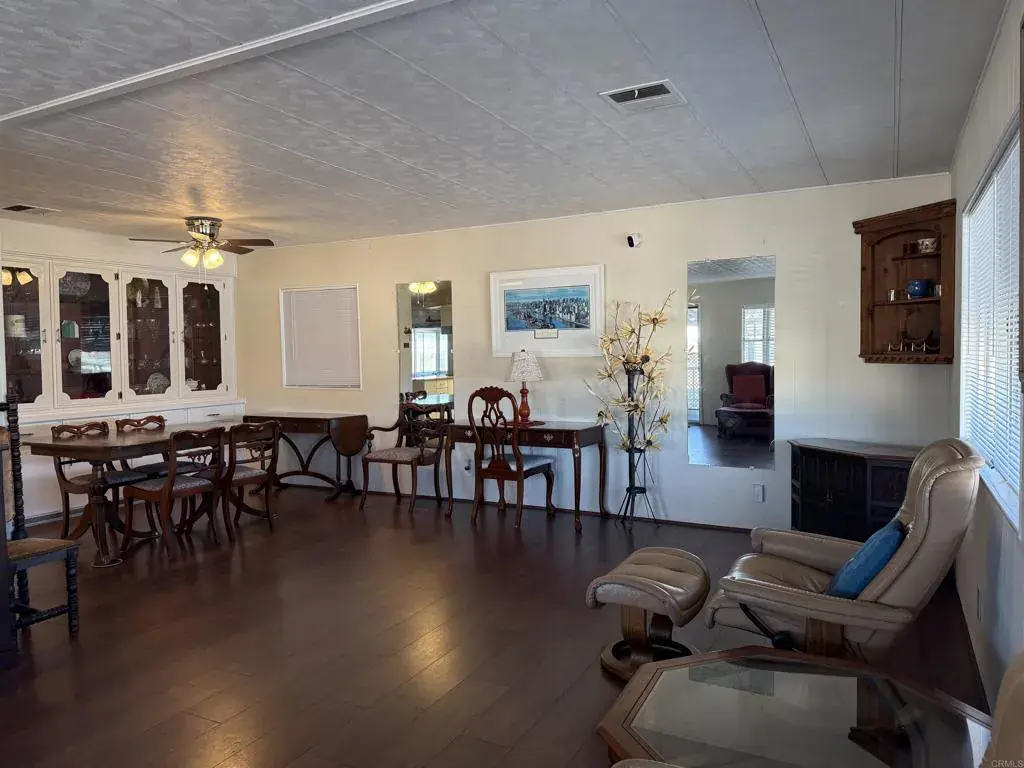 Welcome to your new sanctuary in sunny Vista! Step inside to discover a thoughtfully designed 2 bedroom/2 bathroom 1,440 sq ft. layout that maximizes every square foot of living space. Bright, updated kitchen with shaker cabinetry, stainless steel refrigerator, microwave, dishwasher, mosaic tile backsplash, stainless steel sink and garbage disposal (2023). Kitchen skylight panels updated to LED (2025). Gas furnace and central air conditioning replaced (2024) ensuring comfort year-around. Convenience is the key with a inside laundry room with new washer and dryer (2024). Brand NEW ROOF (2024). All new luxury vinyl plank flooring throughout the home (2023) and all floor vents cleaned (2025). The primary bedroom serves as your personal retreat, complete with its own full bathroom for added privacy and convenience. The second bedroom offers versatility—whether you need a guest room, home office, or creative studio, this space adapts to your lifestyle needs. Parking is a breeze with a carport for 2 cars plus a shed for storage. Ample guest parking close by. Indulge in the amenities of this vibrant 55+ community, including a pool, spa and clubhouse. Located just minutes from the beach, with easy access to freeways, shopping, dining, hospitals and more. Space fee covers sewer, trash and water. Schedule your private showing today and discover why this Vista address could be your perfect next chapter!