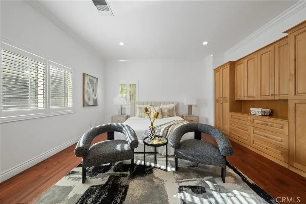 The primary suite defines indulgence, featuring a private sitting area, walk-in closet, romantic fireplace, and a spa-inspired bath retreat that rivals a five-star resort.