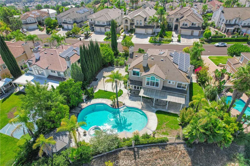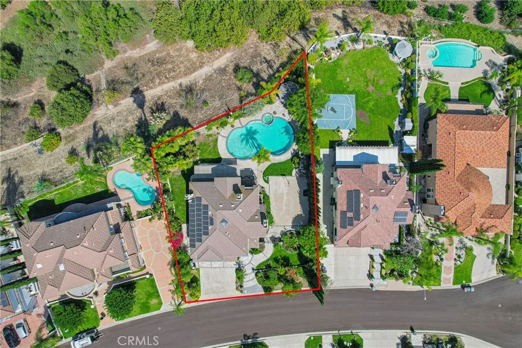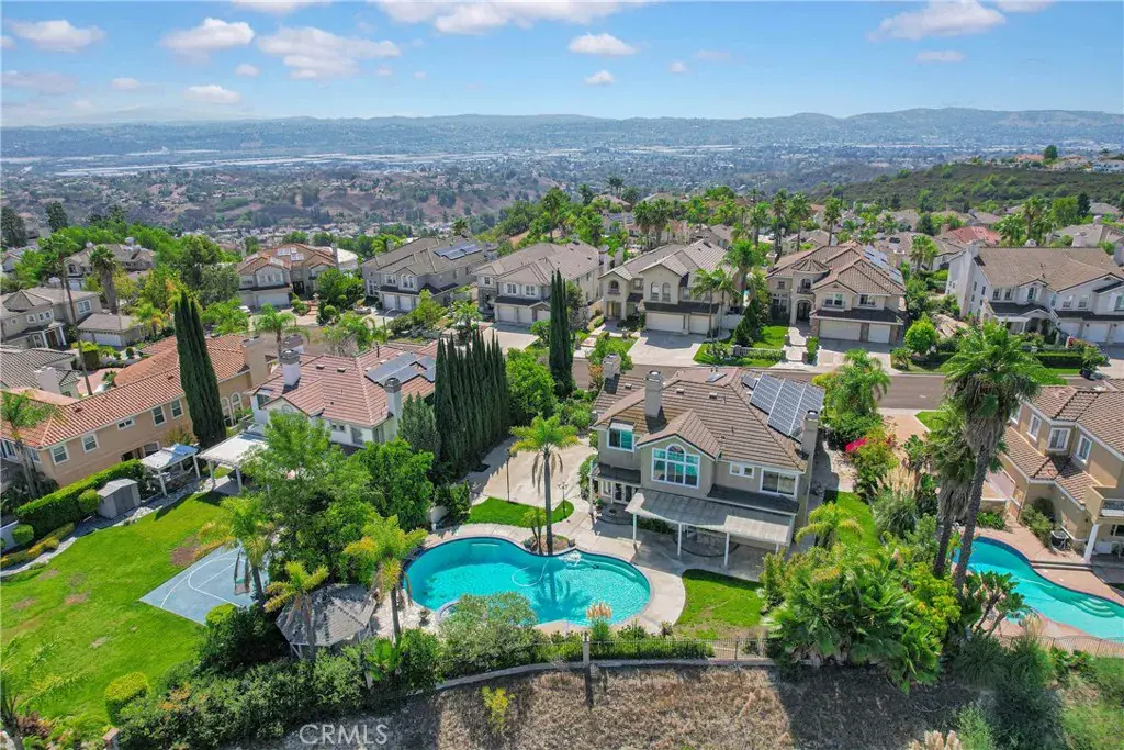 Discover your dream home in this stunning 5-bedroom, 4.5-bath residence boasting and approx. 3,665 sq.ft. of luxurious living space on an expansive 27,000+ sq.ft. lot. This is an elegant south-facing home in the prestigious Belgate Estates of Walnut. Step inside to find a formal living room with soaring cathedral ceilings and a separate dining room, perfect for entertaining. The chef’s kitchen features upgraded granite countertops and stainless steel appliances, seamlessly opening to a cozy family room complete with a warm fireplace. The main floor includes a convenient en-suite bedroom with its own bathroom, along with a stylish half bath for guests. Upstairs, the expansive master suite offers a private retreat with its own romantic fireplace and a terrace where you can unwind and enjoy picturesque views.The beautifully landscaped backyard is perfect for entertaining with a private pool, patios, and breathtaking hillside and city light views. Additional highlights include 26 pieces paid-off solar panels, providing both energy efficiency and cost savings. With a 3-car garage and basketball court. Located in the award-winning Walnut School District, this home is just minutes from Mount Sac College, walking trails, parks, schools, and shopping. A rare opportunity to own a dream estate in one of Walnut’s most desirable neighborhoods and enjoy a lifestyle of comfort and convenience!