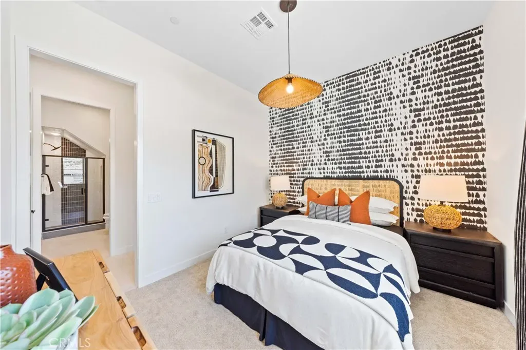 Discover this townhome in the exclusive “Felice” community, proudly situated within the highly acclaimed Walnut School District. Felice Plan 3 features 4-bedroom, 3-bath residence embodies architectural elegance, featuring classic tile accents, sandstone stucco, and an open-plan design highlighted by soaring nine-foot+ ceilings that create a spacious, light-filled ambiance. A convenient downstairs bedroom adds flexibility for guests or multigenerational living.