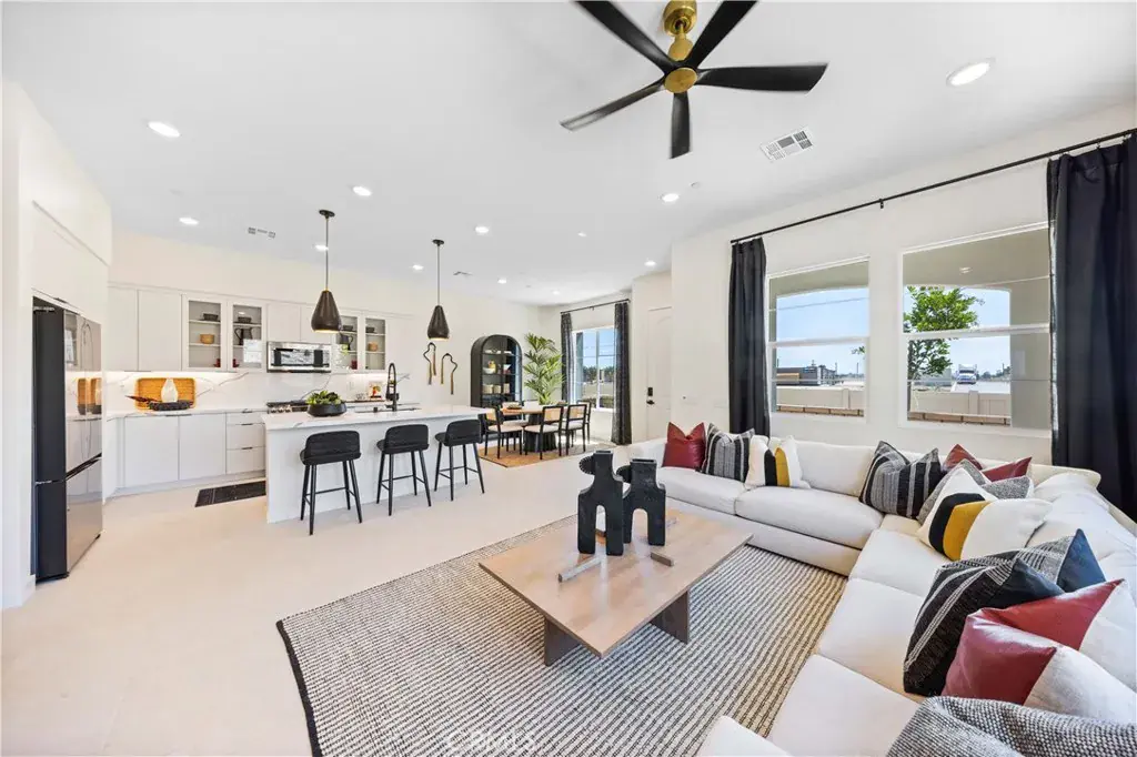Discover this townhome in the exclusive “Felice” community, proudly situated within the highly acclaimed Walnut School District. Felice Plan 3 features 4-bedroom, 3-bath residence embodies architectural elegance, featuring classic tile accents, sandstone stucco, and an open-plan design highlighted by soaring nine-foot+ ceilings that create a spacious, light-filled ambiance. A convenient downstairs bedroom adds flexibility for guests or multigenerational living.