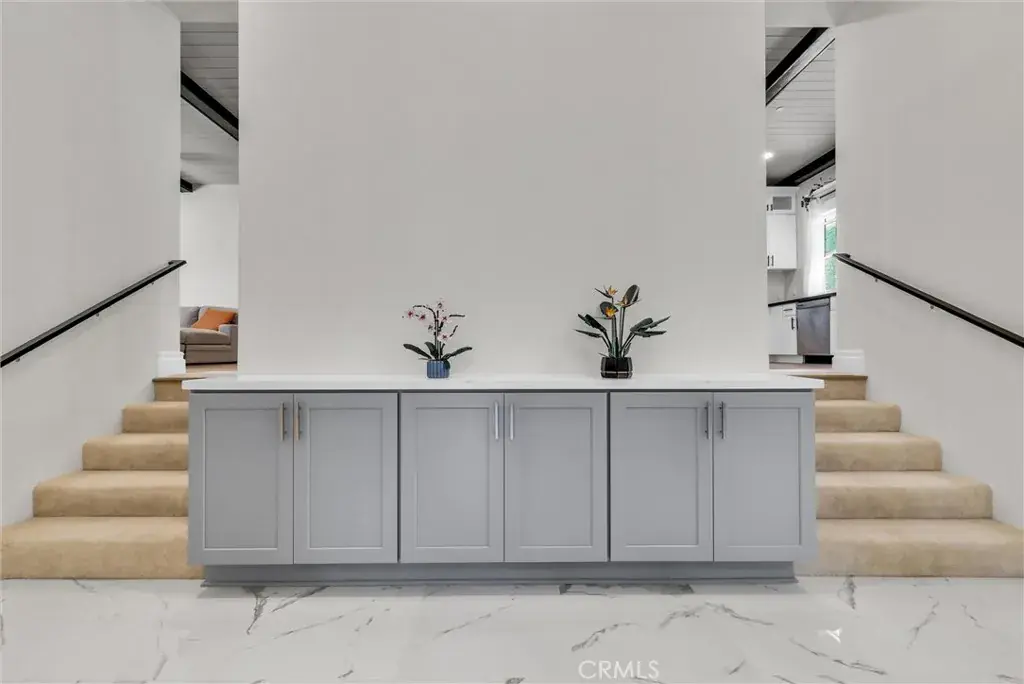 Inside the ornate double front doors, you’ll find a dramatic foyer with soaring ceilings, marble floors, custom millwork and lots of natural light.