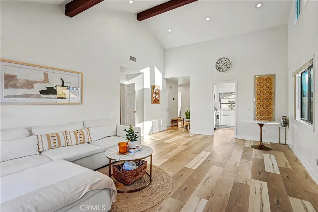 A rarely found Single-Story end-unit townhouse with incredible high-ceiling nestled in the back of the desirable gated community of Emerald Crest. Blending modern upgrades and effortless living, this home features numerous recent upgrades, including a newer kitchen with Euro style self closing cabinets, newer stainless steel kitchen appliances, newer modern style bathrooms, newer LVP flooring throughout, LED lighting in all rooms and a newer designed stylish backyard.