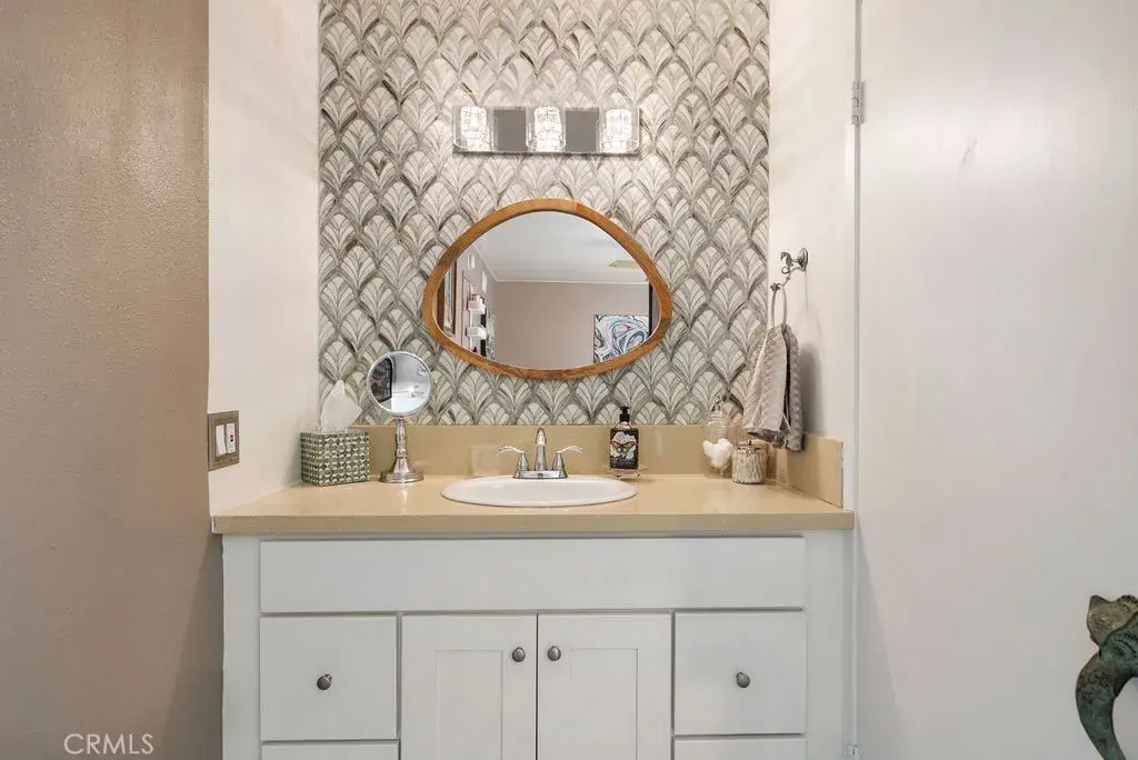 Main Bedroom: A Large spacious bedroom with a pretty view and amazing walk-in closet, vanity and sink*Master Bathroom: Newly remodeled with porcelain tiles, newer vanity, and sink, whirlpool Kohler bathtub, updated mirror and lighting, luxury faucets and knobs.*Downstairs Powder Room Half Bath: Remodeled with newer tile, wallpaper, glass sink, new lighting, luxury faucets and knobs with Kohler toilet