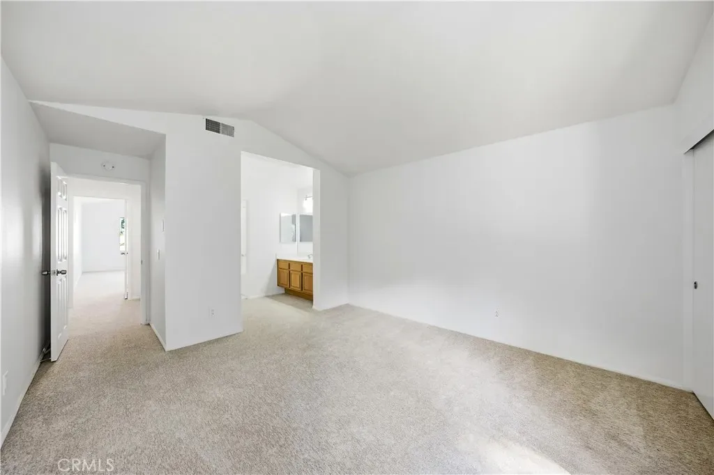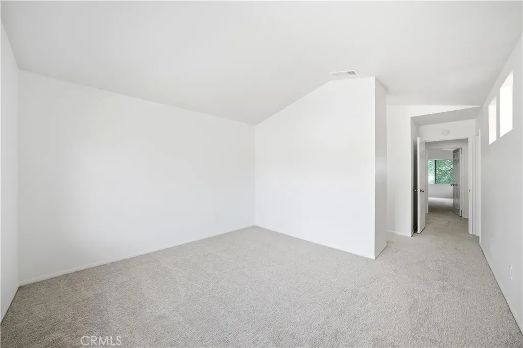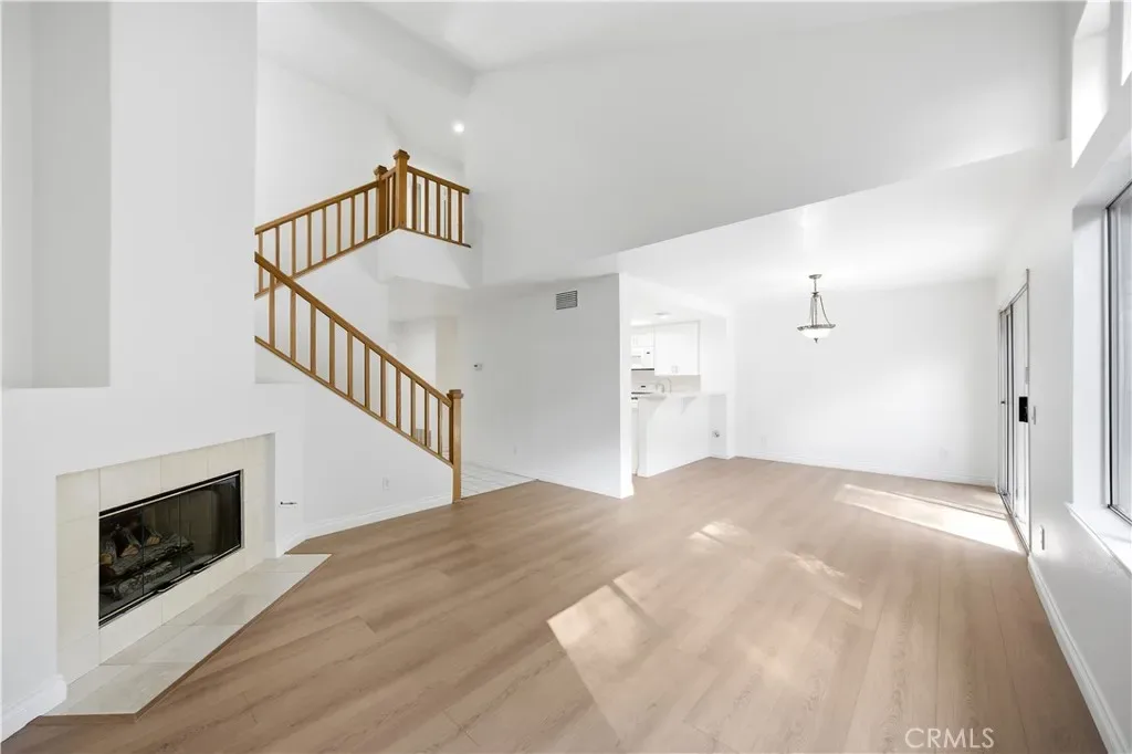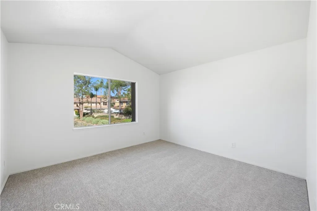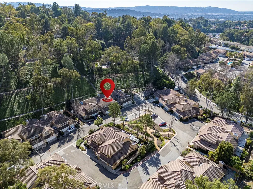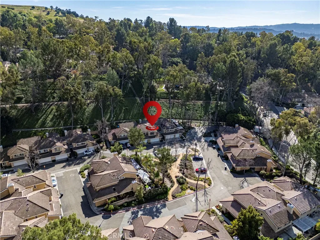 This two-story condominium with 2 primary bedrooms, 2.5 bathrooms offers 1,488 square feet with high ceilings and an open floor plan. Living room features a gas fireplace and direct sliding door access to the private patio. Dining area connects to the kitchen through a breakfast bar opening. Remodeled kitchen includes quartz countertops, white cabinetry, recessed lighting, built-in microwave and dishwasher. All bedrooms are located upstairs. Primary suite includes vaulted ceiling, and en-suite bathroom with walk-in shower. Second bedroom features vaulted ceiling and access to a full bathroom with tub/shower combination. Remodeled powder room on the main level. Interior updates include fresh paint, new carpet, recessed lighting, and central air conditioning. Private fenced patio includes Trex decking and backs to a landscaped hillside with no rear neighbor. Two-car attached garage provides direct interior access. Monterra Pointe community amenities include pool and spa with surrounding deck and lounge areas. Convenient access to nearby shopping, dining, parks, and freeway corridors.