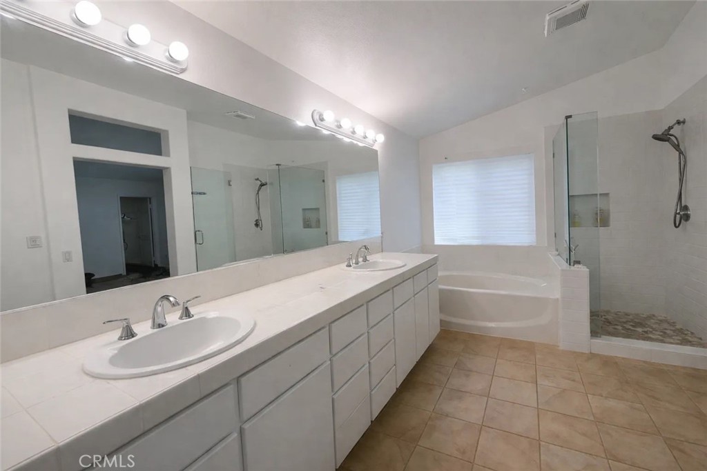 The primary suite includes a walk-in closet, dual sinks, soaking tub, and separate shower. Additional highlights include fresh interior paint, newer appliances, and in-home laundry.