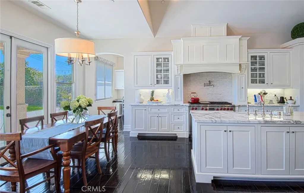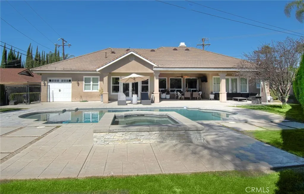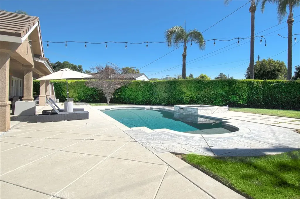 Welcome to this custom single-story home, offering approximately 3,276 square feet of living space on an expansive 14,683 square foot lot. Built in 2011, the home features four bedrooms and three bathrooms with a functional, open layout. A formal entryway leads to a living room and flows into an open kitchen and additional living space, ideal for everyday living and gatherings. The primary suite includes a soaking tub, while three additional bedrooms provide flexible use options. Wood flooring runs throughout the home, complemented by marble countertops in the kitchen and bathrooms. The kitchen is equipped with high-end appliances and includes a wet bar conveniently located off the formal dining room. The fully fenced and landscaped yard features a saltwater pool, offering outdoor space for relaxation and enjoyment.