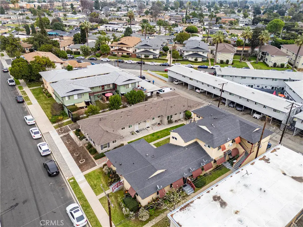 Four-unit residential income property in West Covina consisting of one single-story building with a total of 2,533 sq ft on a 7,315 sq ft lot. Built in 1954, the property features a total of six bedrooms and four full bathrooms across four units, including two 2-bedroom/1-bath units and two 1-bedroom/1-bath units. Each unit has a private exterior entrance and is arranged around a central landscaped courtyard with lawn and concrete walkways. The property includes four assigned garage spaces located at the rear of the parcel with alley access. Utilities consist of four separate electric meters, four separate gas meters, and one shared water meter. Exterior improvements include new roof, stucco construction, defined pedestrian paths, and maintained common areas separating the units from street frontage and parking. Near the Eastland Center and Plaza West Covina retail corridor, with nearby access to dining, shopping, parks, and major surface streets serving the greater West Covina and San Gabriel Valley area.