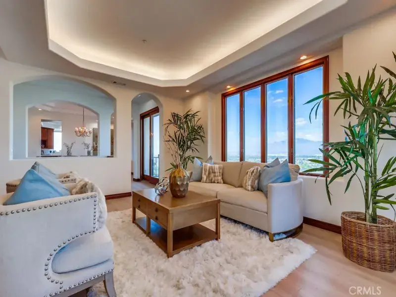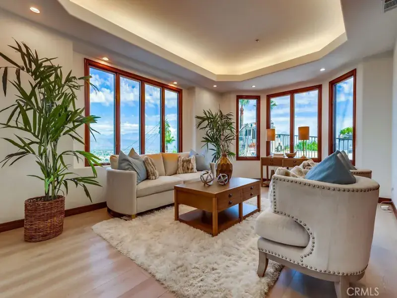 Perched high in prestigious South Hills, this remarkable estate commands nearly 360 degree panoramic views spanning from Downtown Los Angeles, Mount Baldy and the fairways of South Hills Country Club. Designed by the renowned Sarah Margaret Courtney, the home offers a rare blend of architectural elegance and elevated hillside living. With soaring ceilings, graceful arches, two fireplaces and expansive Anderson wood-clad windows. The interior is filled with natural light while framing the breathtaking vistas from nearly every room. The open living spaces flow effortlessly, creating an ideal environment for both refined entertaining and everyday enjoyment. The chef’s kitchen is thoughtfully designed with premium appliances, custom cabinetry, and a generous center island, opening to inviting dining and living areas. The primary suite is a true retreat, featuring a spa-inspired bath, sitting area and private balcony overlooking unobstructed views. There are built in cabinets throughout, ample storage and a laundry shoot for convenience. Multiple outdoor spaces, mature landscaping and fruit trees complete this exceptional setting. A rare opportunity to own a one-of-a-kind view estate just minutes from South Hills Country Club, award winning schools, dining and shopping.
