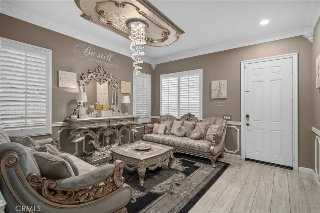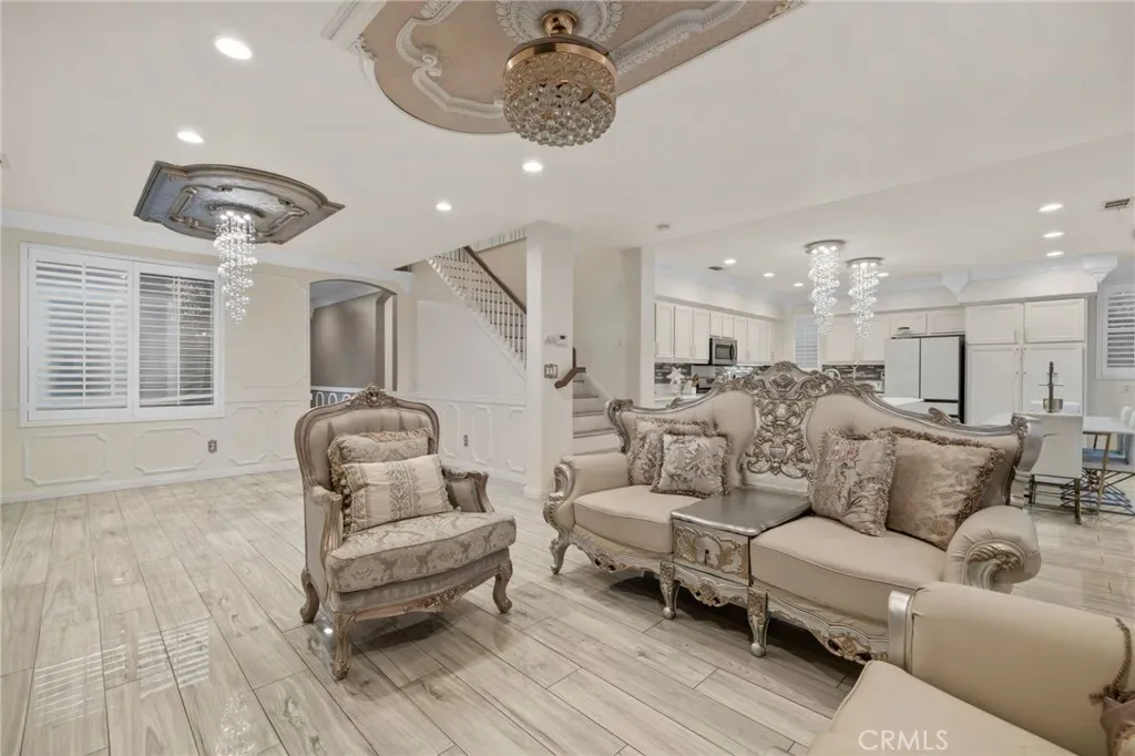 Take a trip into Parisian elegance with stunning wall woodwork and dazzling chandeliers that evoke timeless European charm. Welcome to this stunning West Covina residence, where classic sophistication meets thoughtful upgrades throughout. From the moment you arrive, the paved front porch sets the tone for the grace and refinement found inside.