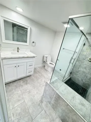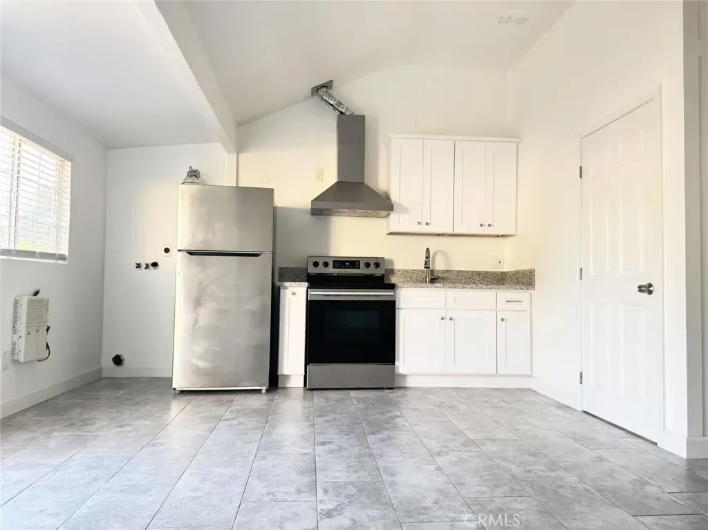 COMPLETELY NEWLY REMODELED studio/ ADU with a spacious open floor plan and high ceiling. The modern kitchen flows into a large living area, featuring new tile flooring, upgraded full bathroom, fresh interior and exterior paint, New A/C, and a tankless water heater.