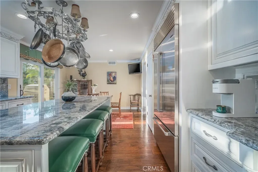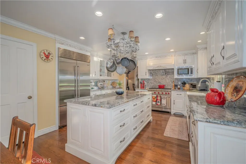 This luxury estate located in the prime & complete privacy location of “South Hills” area. The owner has thoughtfully upgraded with the top of the line materials and appliances. Large living room with stunning vaulted wood-beamed ceiling and expansive custom fireplace. Formal dining room with vaulted high ceiling and a large window that brings in the natural light. Gourmet kitchen with center island, top of the line appliances and custom cabinetry. Large family room with built in bookshelves. Custom drapes, anderson sliding doors, recessed lighting, crown moldings and hardwood flooring throughout the downstairs. Master suite with balcony to enjoy the beautiful backyard and the bathroom with soaking tub, steam shower and granite countertop. Completely private RESORT-LIKE 22,610 SF all flat backyard professionally landscaped with sparking pool/spa and large patio. This is an extremely well-maintained home. Upscale neighborhood. 3 car garage attached. Walking distance to South Hills golf course/ country club. South Hills schools and park. Showcase, Extraordinary, elegance all in this estate. Excellent school district. NO HOA fees.