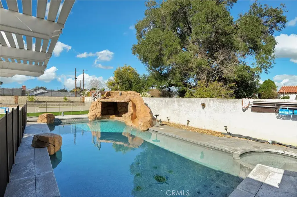 Spacious home located in the City of West Covina. Home offers three spacious bedrooms and three bathrooms. As you enter this home, notice the 42inch custom security door which draws you into this home which has been recently remodeled with the latest amenities and modern color palette. Kitchen boasts quartz counters and a double pantry with drawer pullouts and new tile floors. Indoor laundry room conveniently located off the kitchen. Formal dining room opens into living room with a new gas fireplace. Hall leads you to the private bedrooms with a full bathroom in the hall. Primary bedroom includes a private full bathroom. Huge family room with sliding glass doors inviting you to step outside and enjoy the professionally designed and landscaped back yard. This oasis boasts an in-ground salted pool with new Pentair equipment and a large rock slide for the kiddos or you can relax in the adjacent spa with the entire space gated for safety. Enjoy an afternoon on your personal putting green. New flower bed with fruit trees. Two car garage completely dry walled with additional laundry hook-ups. Plenty of parking on this 12,711 square feet lot. Additionally, this home has a newer roof with a Presidential Lifetime Guarantee, newer dual pane windows, newer AC/Heater, and a tank less water heater.