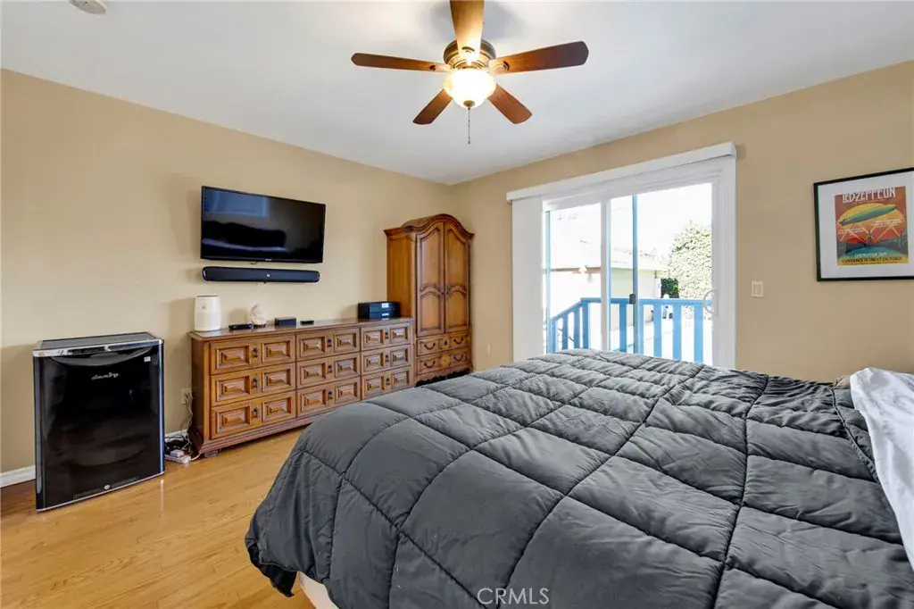 The luxurious master suite has, 2 large closets, its own sliding door to the backyard, and includes a relaxing Jacuzzi tub, and dual sinks in the master bathroom. A step-down bedroom on the other side of the home, currently serves as a flexible workout room, with direct access to the pool as well.