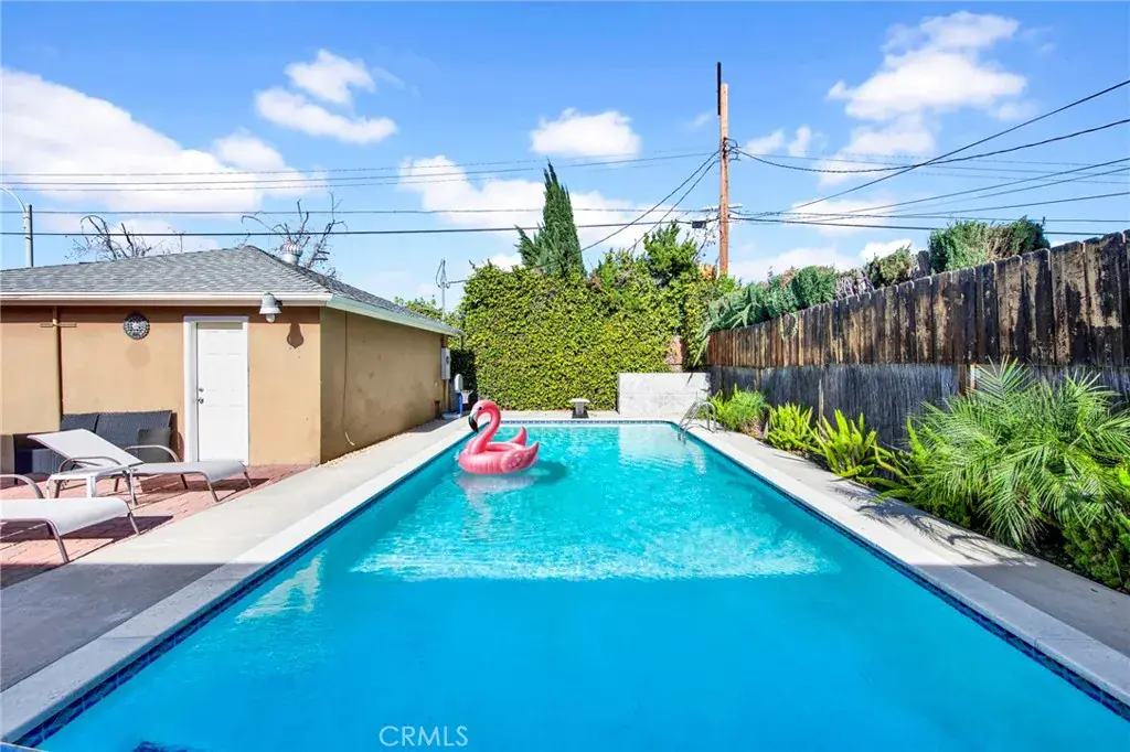 Once outside to your private backyard oasis, you’ll be able to enjoy a sparkling pool with its own heater, which was recently re-plastered with fresh tile and coping — ideal for year-round enjoyment.