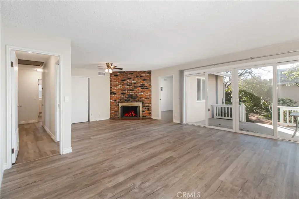 This single-story residence features four bedrooms and three bathrooms; all conveniently located on one level. The interior boasts a kitchen with an adjoining dining area featuring a pass-through window. Separate dining room, and a family room enhanced by a brick fireplace, providing multiple spaces for daily living and entertaining. The layout is designed to be light and open, contributing to a spacious atmosphere throughout the home. Newer windows and doors not only enhance the home’s aesthetic but also contribute to increased energy efficiency. Wood floors are throughout. For added convenience, the separate indoor laundry room is complete with a sink.