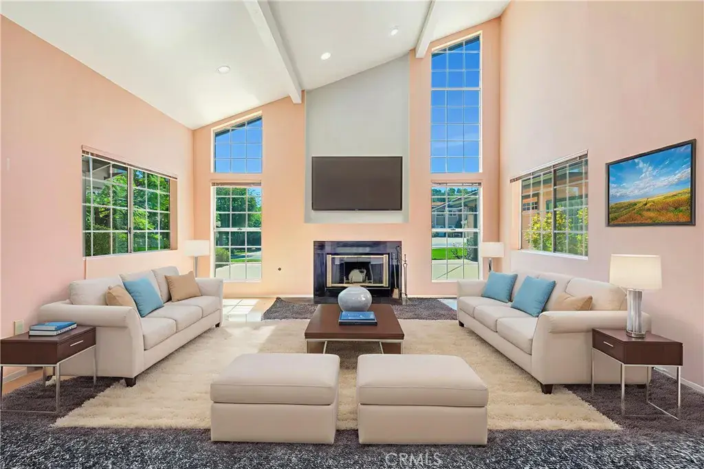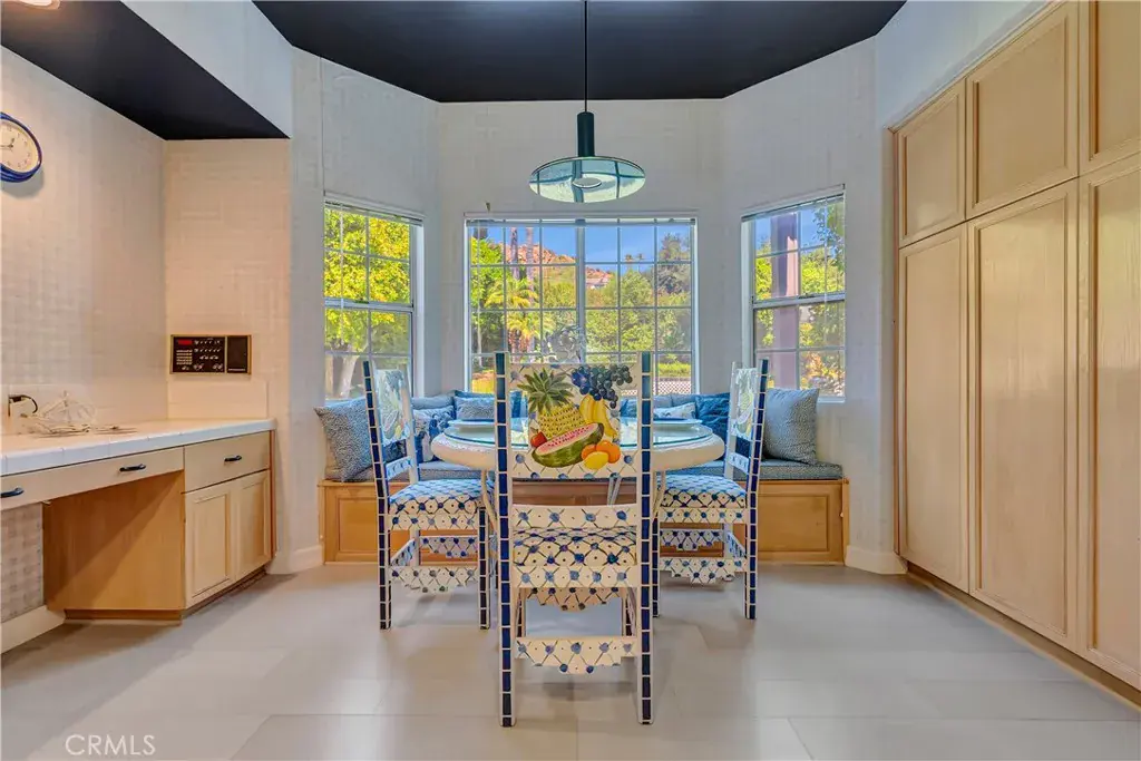The open floor plan showcases grand, light-filled living spaces, including a formal living room with fireplace, a large dining room with yard views, and a welcoming family room with built-in wet bar, refrigerator, and fireplace. The chef’s kitchen boasts a center island, breakfast nook, and abundant storage. Inside laundry room and 2 car attached garage, property has an extra large driveway and large closets with built ins. Zoned for horses.