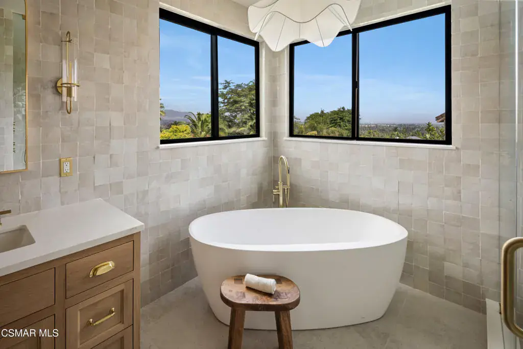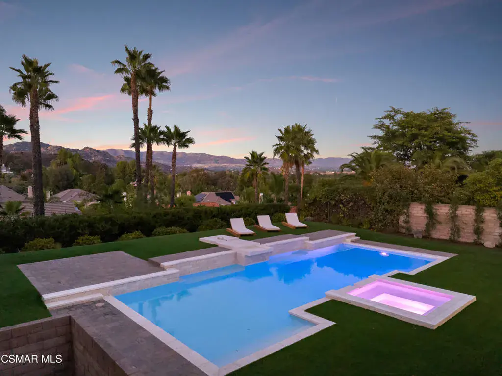 Warm, Refined, and Timeless West Hills Transitional Home Meets Family-friendly Design!Welcome to a truly one-of-a-kind, fully reimagined 5-bedroom, 4.5-bath luxury residence that has been thoughtfully crafted for discerning buyers who value high-end design, comfort, and function. Inside, the custom floor plan showcases expansive living spaces, raised door headers for an elevated aesthetic, and two luxurious primary suites — one on each level — ideal for multi-generational living or hosting guests.The designer chef’s kitchen and beautifully crafted custom cabinetry throughout the home reflect a commitment to quality and timeless sophistication, while two separate laundry hookups add everyday convenience and practicality for busy households.Designed for seamless indoor-outdoor living, the main living area and upstairs primary suite both feature oversized bifold sliders that open to a private entertainer’s oasis — complete with a large stunning pool, built-in BBQ, and panoramic views. Upstairs, a generous deck off the primary suite provides a serene escape with stunning views, perfect for morning coffee or evening relaxation.From the designer tiles, custom plaster range hood, architectural elements inserted throughout, refined stone and smooth stucco exterior, every detail has been meticulously selected. Take comfort in knowing that nearly everything in this home has been replaced and modernized, including brand new Milgard windows, a new HVAC system and water heater, upgraded plumbing throughout the entire house, new rain gutters, and a newly replaced yard drainage system — offering peace of mind and modern efficiency. Whether you’re entertaining on the weekends or enjoying quiet family evenings, this warm and inviting modern masterpiece delivers the perfect balance of luxury, comfort, and lifestyle.