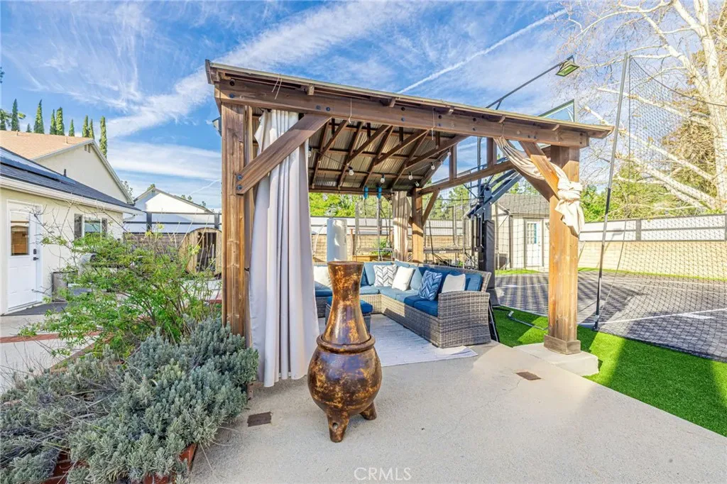 SHOW STOPPER ALERT!!! Welcome to PARADISE, where modern convenience meets LUXURY!! 2 HOMES!! ENERGY EFFICIENT, EXTENSIVELY UPGRADED MAIN HOME 3+2 w/ NEWLY CONSTRUCTED, READY TO MOVE-IN 1+1 ADUHAS SEPARATE ADDRESS, HIGH END FINISHES, 30 FULLY PAID SOLAR PANELS, TESLA E/V CHRGR, NEW HEATED-POOL, BASKETBALL 1/2 court(Mega-Slam), SAUNA *NEW GATES *LOCATED on a QUIET CUL-DE-SAC, fully renovated (8×8)Shed/BONUS SPACE w/ small fridge. From the moment you arrive, the beautiful landscaping and newly paved driveway offers generous space for 6 cars, ensuring a warm and effortless welcome for your visitors. The main home’s brand new modern double doors add security and tie in perfectly with this newly renovated, spectacular SINGLE-STORY. New crown molding/baseboards and brand-new engineered flooring that will last a lifetime! Previous owner installed a NEW ROOF, NEW WINDOWS, A/C/HEATING & UPGRADED the ELECTRICAL PANEL. Relax by the glow of the fireplace in the heart of the home/Living room that opens up to the designer-curated farmhouse kitchen that was engineered for the serious chef which flows effortlessly into the dining area to create a seamless indoor-outdoor hosting experience. Boasting professional-grade appliances, large island w/built small oven, Quartz ctops, high-end stainless-steel appliances, WOLF convection oven, pot filler,white shaker-style cabinetry, this culinary masterpiece flows into a sun-drenched dining area, creating a perfect circuit for entertaining guests while overlooking the massive backyard. The spacious primary suite offers a private upgraded bathroom, LED mirrored wardrobe & makeup area. 2 additional bedrooms fully renovated w/ full bathrm, LED lighting and organized closets in all bedrooms. A separate entrance leads you to the BRAND-NEW 480 ft², 1+1 ADU, w/a lavish quartz waterfall island and ctops,ALL appliances incl (electric)stackable washer/dryer, refrigerator, stainless steel range, stove, microwave & dishwasher. Engineered flooring flows throughout the HOME/ADU & SHED(except bath areas) Retreat to your private sanctuary featuring a state-of-the-art 4-person sauna and a brand-new heated pool. The backyard oasis continues w/ a permanent custom cabana, offering a sophisticated setting for starlit gatherings while overlooking the integrated basketball court. Finished w/ premium all-season turf, this space is meticulously designed for effortless, low-maintenance luxury.*ADU permitted.
