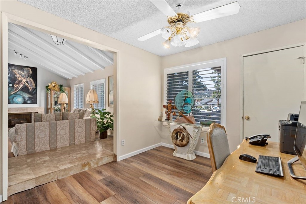 Beautiful single-story Kaufman & Broad home with RV parking located at the top of a quiet cul-de-sac in desirable West Hills with scenic hill views. This 1,634 sq ft home sits on an oversized 13,494 sq ft lot (approximately .31 acres) and offers a very private, tree-filled backyard setting. The home features three bedrooms and two bathrooms plus an open office with built-ins off the entry, across from the spacious living room. The living room showcases a beautifully updated fireplace, dramatic mirrored wall, plantation shutters, and vaulted ceilings. Plantation shutters are also featured in the office and dining area. The layout includes a dining area, kitchen, and adjoining den. The property offers excellent curb appeal, RV parking, and a three-car garage. Separate ADU structure on the property (buyer to verify permits and all aspects of ADU). Close proximity to Justice Street Academy Charter School, George Ellery Hale Charter Academy, award-winning El Camino Real High School, and Warner Center.