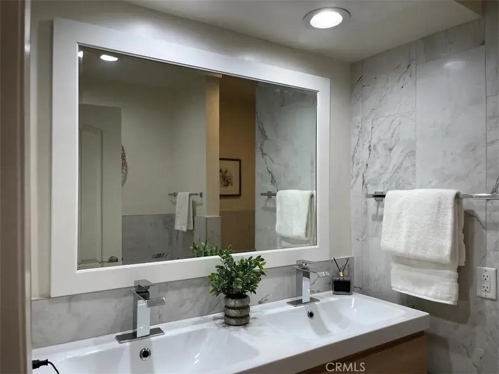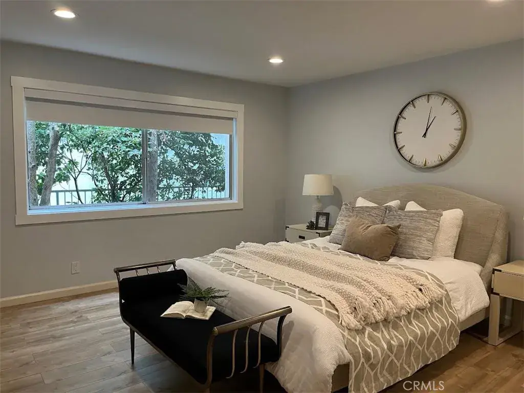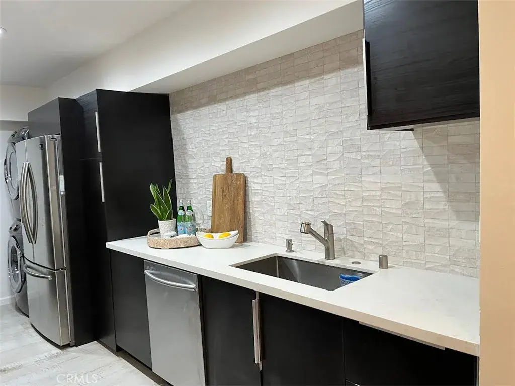 OVER $$30,000 upgrads done in 2022. The dining area can BE CONVERTED to a secondary bedroom. This super spacious one-bed, one and a half bath, single-level unit is situated in the heart of West Hollywood. The open floor plan is filled with natural light from a wall of windows and tree line views. Enjoy recess lighting throughout and new bedroom flooring. The Chef’s kitchens features custom cabinetry, quartz countertops, designer tile backspashes, stainless steel appliances and stackable washer and dryer. The large bedroom includes a newly remodeled spa-like bathroom with soaking tub, seperate shower and walk-in closet plus additional closet with mirror door. The building is beautifully maintained with newly painted lobby and hallways and new carpeting. Secured one parking space. HOA amenities include parking, pool, and HOA fee includes water, trash & A/C. Near beautiful Kings Road Park, minutes from Gelson’s, Melrose Farmers Market, and the best LA’s restaurants, shops and night life-this condo is the perfect spot to enjoy the West Hollywood lifestyle.