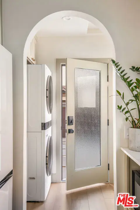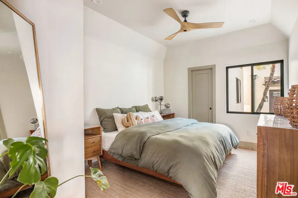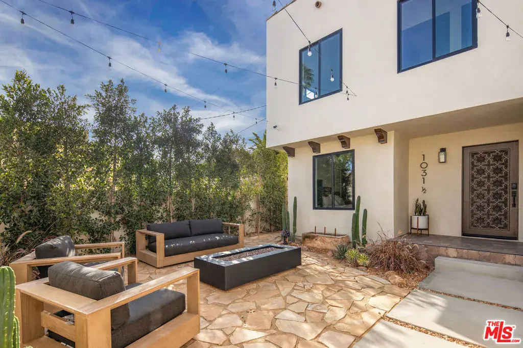 Welcome to Villa Galicia, a beautiful new construction, modern Spanish-style villas offering the perfect blend of luxury, Spanish design and privacy. This two-bedroom, one- bathroom gem is located in the front house duplex. Villa Galicia is the first of an exclusive new development of four resort-style villas being offered for lease. Each villa boasts impeccable finishes and thoughtful design details, giving each villa unique and individual charm, yet cohesive flow. Villa 1033 features a spacious, open-concept living area that seamlessly connects the kitchen, dining, and living spaces. Immediately you will be greeted with tall vaulted ceilings throughout with white oak beams. The dining area hosts a large island with counter seating and ample storage and the restored original built in china cabinet. The open concept kitchen is equipped with high-end Samsung appliances including a gas range with air-fry capabilities, a French door refrigerator with cube and nugget ice, and a purified water pitcher. The kitchen also offers ample storage. The living room is a true focal point, showcasing an oversized Spanish-style arched picture window with Spanish style fireplace that adds warmth and ambiance. Enjoy cinematic entertainment with the Samsung Frame TV and Sonos sound system, perfect for movie nights or unwinding after a long day. Both bedrooms are generously sized with walk in closets. The large central bathroom features a private water closet, large double vanity, marble sconce, linen closet, and an oversized luxurious shower with a tiled trench drain for a spa-like experience. The villa is equipped with smart home features, including Schlage electronic deadbolts for keyless entry that can be unlocked from smart phone, app, or Apple Watch. A LG washer and dryer tower is strategically located by the back door with ample storage surrounding it. Step outside onto your private front porch with traditional Spanish tile. It’s the perfect spot for morning coffee or evening cocktails, offering a serene retreat in the comfort of your own home. The expansive backyard is perfect for outdoor living, featuring West Elm outdoor furniture, a gas fire pit, and a Blackstone grill all for common use. It’s an ideal space for entertaining guests or simply relaxing and enjoying the beautiful surroundings. Villa Galicia offers the ultimate resort-style living with modern comforts and unparalleled privacy, making it the perfect home for those seeking both luxury and convenience in one of West Hollywood’s most desirable locations, walking distance to many shops, restaurants and new Erewhon opening.