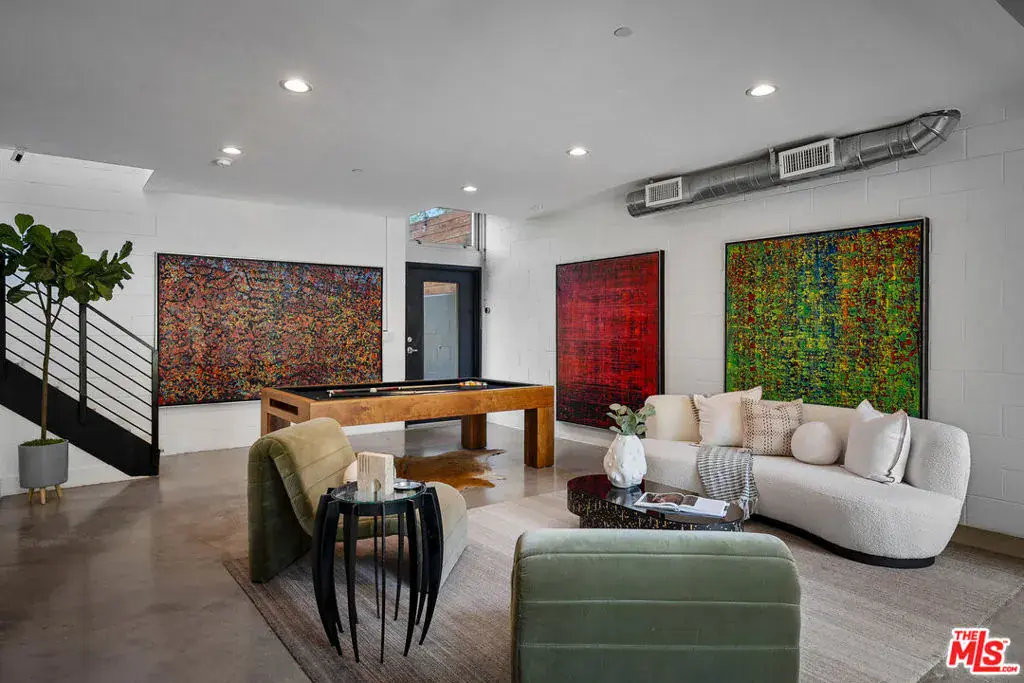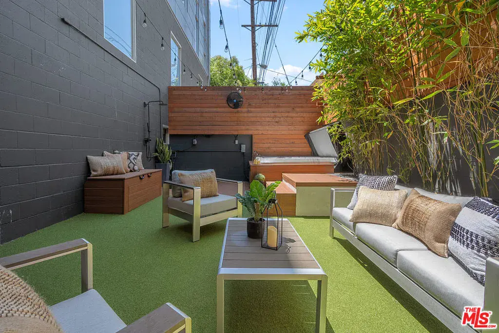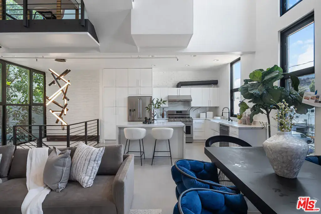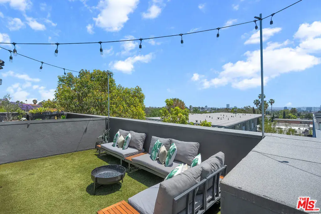 Live above it all in this impeccably designed penthouse condo that lives like a townhouse, nestled in the heart of West Hollywood. Offering over 2,100 sq. ft. of thoughtfully curated living space, this three-bedroom, three-bath residence features soaring ceilings, a striking blend of micro cement and wood floors, and elevated finishes throughout. One of the bedrooms on the first level has been converted into a custom walk-in closet but can easily be transformed back, offering flexible use of space to suit your lifestyle. The bright white kitchen is outfitted with newer appliances and opens into an airy living and dining area that flows effortlessly for entertaining or unwinding in style. Step outside to your private outdoor patio with a hot tub and outdoor shower, or ascend to the expansive rooftop deck to enjoy sweeping views from the Hollywood Hills to downtown Los Angeles. Additional highlights include rare guest parking, extra storage, and an unbeatable location near some of the city’s most iconic restaurants, nightlife, and entertainment.