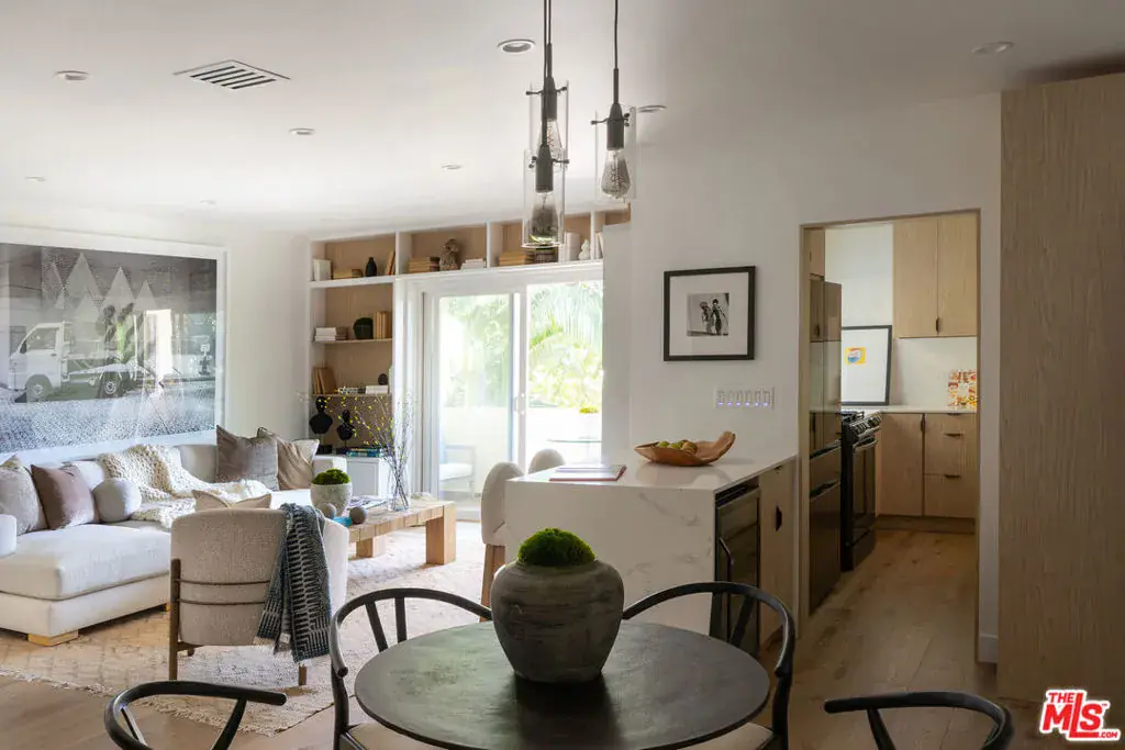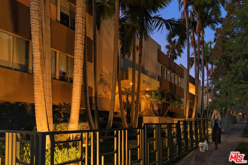 Perched on the top front corner of a classic mid-century building, this rarely available stunning 2Bed/2Bath condo captures the essence of refined West Hollywood living! Bathed in natural light and enjoying exceptional privacy with no adjacent neighbors on 2 sides, the home overlooks graceful palm and tulip trees and opens to a serene balcony retreat- an ideal setting for morning coffee or evening gatherings. *** Completely reimagined with a thoughtful and welcoming sense of design, the fully remodeled curated interior feature French white oak flooring throughout and a seamless open layout. The chef’s kitchen is a true showpiece, with custom underlit white oak cabinetry, warm Caesarstone countertops, and top-of-the-line appliances. A waterfall peninsula offers additional seating and a large passthrough balcony window ensures a brightly lit kitchen and frames views of the lush balcony. Seamlessly connecting to the outdoor patio, the living room features a custom built-in bookcase that transitions into a stunning Venetian plastered wall unit perfectly framing a 65″ flat-screen TV and contemporary fireplace (with adjustable ambient settings). The adjacent stylish dry bar, with custom underlet cabinetry, enhances the space, while the dining area’s cozy corner nook offers versatility as an intimate lounge or home office. *** The primary suite is a truly light and bright retreat, featuring custom Japanese-inspired screen closet system and beautifully designed built-ins that will be the envy of all. The ensuite bath evokes a spa-like ambiance with a floating vanity, bidet toilet, limestone-inlaid walls, and a generous walk-in shower, all adorned with designer trim-work and lighting. The secondary bedroom is equally spacious and includes a fully customized closet, while the hall bath feels like a boutique hotel suite with elegant finishes and a step-in shower. ***Beyond the residence itself, the building embodies the effortless elegance of its mid-century heritage. Residents are greeted by a terrazzo-lined lobby while the central courtyard pool is surrounded by palms, cushioned lounges and sitting areas, offering a perfect escape reminiscent of quintessential Palm Springs. It’s a place that feels as welcoming as it is stylish! *** Additional highlights include in-unit laundry, Eero wifi and smart home control system, upgraded LED lighting, custom doors and trim work throughout, HVAC, custom storage cabinetry, rare two side-by-side parking spaces with universal electric charger, and a level of detail and craftsmanship that sets this home apart from any other. *** Perfectly situated in one of West Hollywood’s most sought-after and convenient locations, this quiet street, top-floor corner residence blends thoughtful design, comfort, and timeless mid-century character in one exceptional offering.