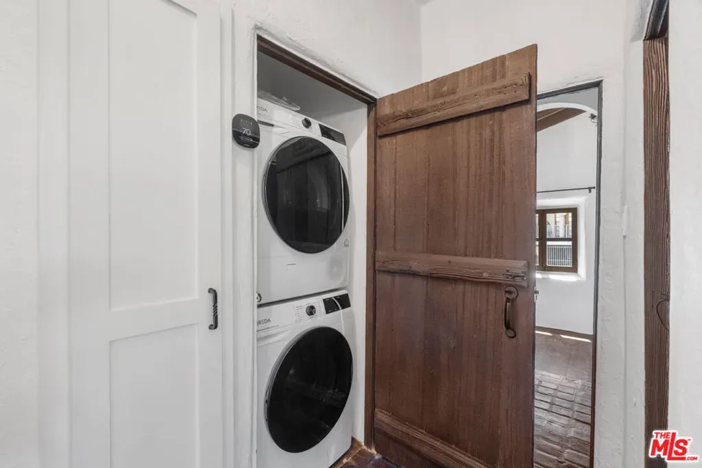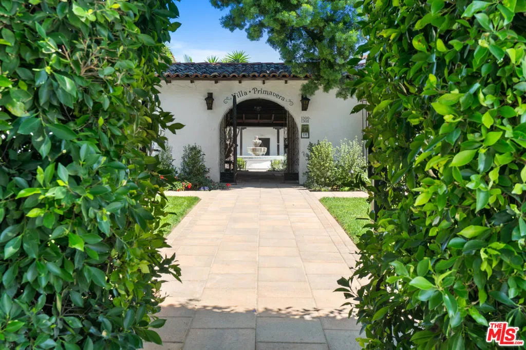 Welcome to Villa Primavera, a 1923 Spanish-Revival complex comprised of 8 residences and a cottage designed by famed architects Arthur and Nina Zwebell that has been meticulously restored, renovated, and upgraded for modern luxury living. Located on the 1300 block of N. Harper Avenue in the historically preserved, tree-lined streets of West Hollywood, you’ll walk past the large hedges into Hollywood’s golden era. Notable stars and luminaries have called Villa Primavera home, and director Nicholas Ray featured the complex as the backdrop of his 1950s classic film noir, In a Lonely Place. This charming building exemplifies California’s indoor and outdoor living with a central courtyard, a large tiled fountain, lush landscaping, and an outdoor fireplace, all to be enjoyed by the residents. Red tile roofs, white adobe walls, and wandering pathways connect the eight residents and the cottage. Each apartment is unique, with original details including exposed wood ceilings, tile floors, wrought iron light fixtures, updated bathrooms with stunning custom tilework and new cabinetry, chef-worthy kitchens with exceptional appliances, and most units with working fireplaces. In addition, each unit has new HVAC and plenty of storage with new closet systems. Now is your chance to be one of the first to call this restored gem home! Residence 1300 particulars include all new stainless steel appliances, a dining room, a working fireplace, central HVAC, and an in-unit washer & dryer, and it was once the home to Katharine Hepburn.