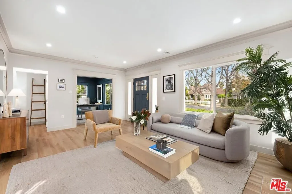 Originally built in a classic architectural era and now fully reimagined, this meticulously remodeled Spaulding Square residence offers a refined, current interpretation of timeless Los Angeles living. Positioned on a wide stretch of North Orange Grove, the home sits within one of the city’s most coveted historic enclaves, just moments from West Hollywood, Sunset Boulevard, and an endless array of dining, shopping, and entertainment destinations. The thoughtfully designed floor plan balances formal and relaxed living. A mantle-anchored living room sets a sophisticated tone, flowing seamlessly into a formal dining room where French doors open directly to a private patio, creating an easy indoor-outdoor flow. The chef’s kitchen has been completely rebuilt with premium appliances and a generous center island, designed for both everyday function and elevated entertaining. Three bedrooms each feature their own ensuite bath, offering comfort and privacy, while a well-appointed powder room serves guests. A spacious office with built-ins provides flexible space for work or retreat as a family den or a 4th bedroom. Side-by-side laundry enhances convenience without sacrificing space or flow. Extensive upgrades bring modern performance to this classic home, including a new roof, new HVAC system, new plumbing and electrical, and all-new landscaping. The finished one-car garage presents prime potential for an ADU conversion, complemented by additional on-site parking for multiple vehicles. Set on a large, grassy oversized lot, the property offers space to relax, entertain, or expand. An expansive front porch overlooks one of Spaulding Square’s most picturesque tree-lined streets, reinforcing the neighborhood’s rare sense of community. Often described by residents as an oasis within the city, Spaulding Square is known for its succession of exceptionally charming homes and its vibrant street life, where neighbors gather and stroll in the early evening light. This offering presents a rare opportunity to move into a comprehensively renovated home in one of Los Angeles’ most treasured and tightly held neighborhoods.