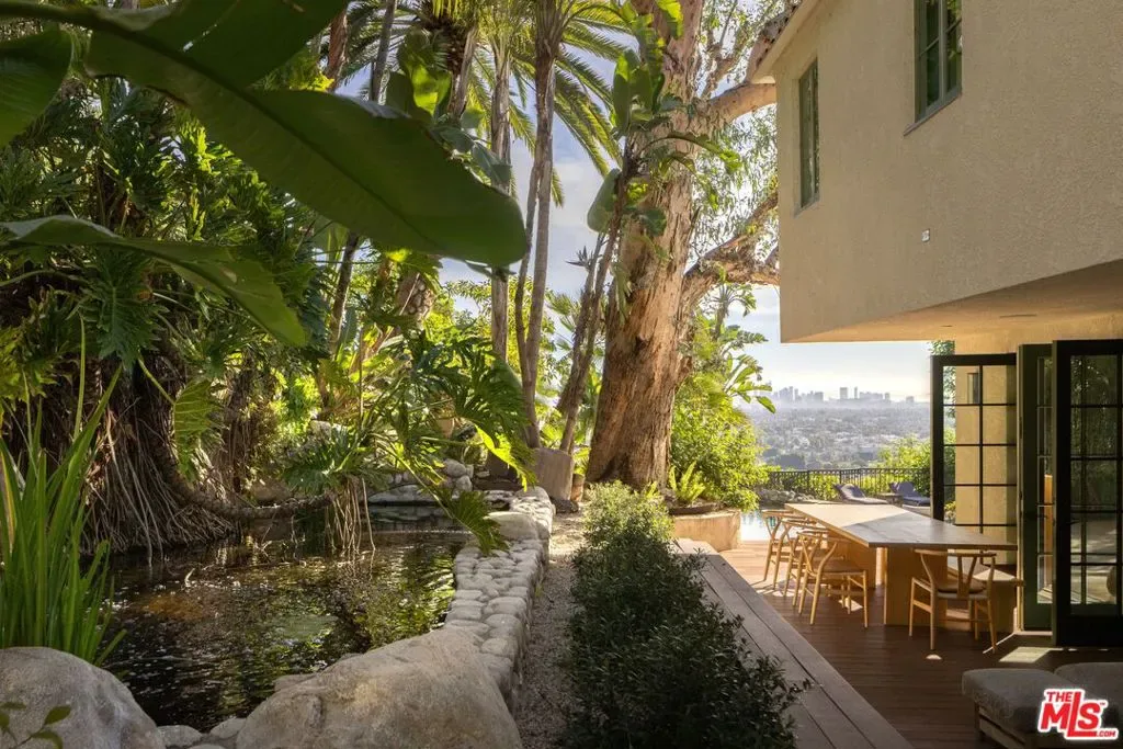 Perched above the Sunset Strip in the Hollywood Hills, this ultra-private 1923 Spanish compound offers sweeping views from the mountains to the Pacific Ocean. Recently reimagined, the estate blends original period character with curated designer finishes, including Belgian bluestone countertops, white oak floors, coved ceilings, Viking appliances, and Waterworks fixtures.The sun-filled family room, framed by five sets of French doors, opens to a resort-style setting with a saltwater pool and spa, koi fountain, tennis court, mature landscaping, and panoramic city views. The home features four en-suite bedrooms, an office, outdoor gym, and an entertainment room with billiardsideal for both relaxing and entertaining.Set behind a long, gated drive with parking for over ten vehicles, the property is moments from the Sunset Tower Hotel, Chateau Marmont, and the iconic Sunset Strip, while remaining completely private. Furniture included in lease may vary from what is shown in pictures. Property privately available for sale as well asking $7,495,000