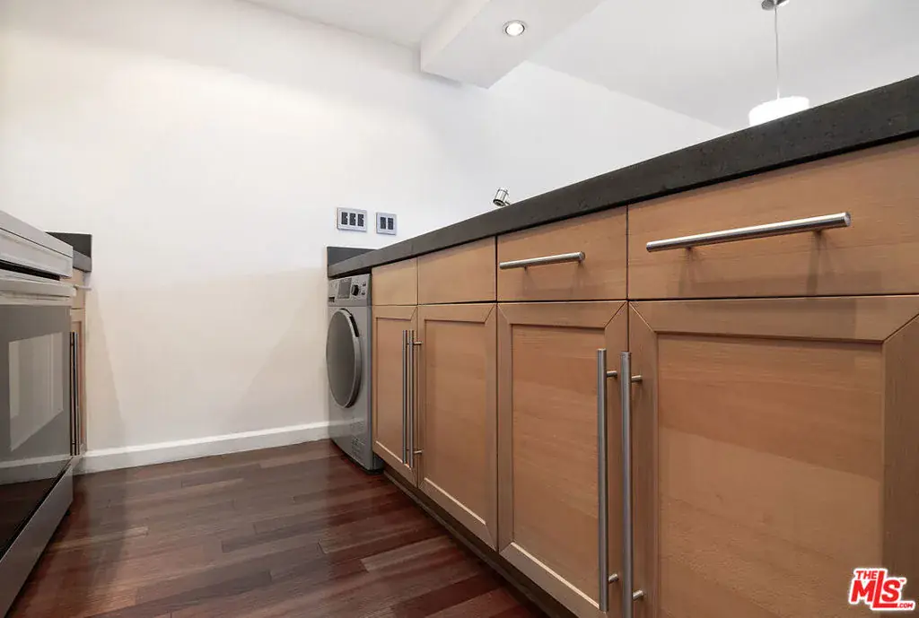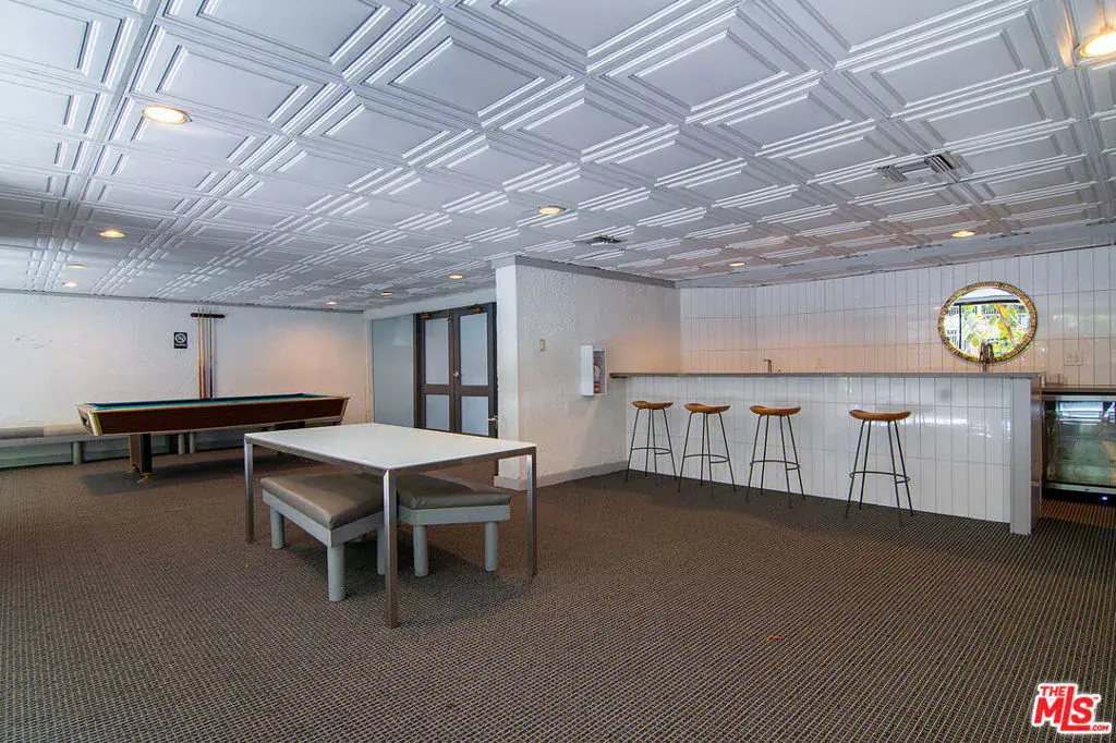 Top-floor south-facing 1-bedroom, 1-bathroom condo on tree-lined Kings Road in the heart of West Hollywood! The kitchen features stainless steel appliances, concrete countertops, recessed lighting, washer/dryer combo and generous cabinet space. Enjoy an open-concept dining and living area with a cozy gas fireplace and sliding glass doors that lead to a private patio. The spacious primary bedroom boasts a walk-in closet and direct access to the patio. The updated bathroom includes granite countertops and a tub/shower combo. Additional highlights include hardwood floors throughout and central AC. Community amenities include secure garage parking, a fitness center, two spas, laundry facilities on each floor, and a rooftop sun deck with BBQ area and stunning mountain and treetop views. Just steps from West Hollywood’s top shops, restaurants, and nightlife!