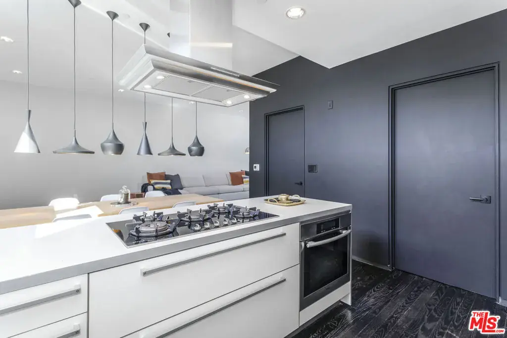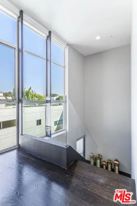 Don’t miss one of the best condos on Kings! Award winning architectural masterpiece, by famed architect Lorcan O’ Herlihy. 2 story town home, top floor units boast floor to ceiling windows, sleek hardwood floors throughout, views of the Hollywood Hills, private sun deck. The open floor plan on the 1st floor showcases an open gourmet kitchen with brand new Viking stainless steel fridge, Miele appliances, and Boffi cabinetry. First floor powder room, airy living room/dining room, and a proper sized laundry room. Retire to one of the two dueling mater suites on the 2nd floor. Free standing tub in the master or floor to ceiling glass shower w/ skylight in bedroom 2 parking spaces and alarm system.