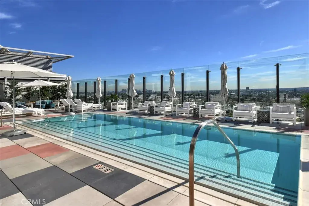 Residents enjoy a white-glove, hotel-style experience with 24-hour concierge and security, valet parking, and an onsite manager. Amenities include a rooftop pool and spa with cabanas, panoramic city views, a new cold plunge and infrared sauna, state-of-the-art fitness center, resident lounge, tranquil garden area, and a private tasting room for wine collectors. Owners also enjoy full access to the Sun Rose Hotel, including Wolfgang Puck’s Merois restaurant, rooftop pool, bowling alley, live music venue, spa and more.