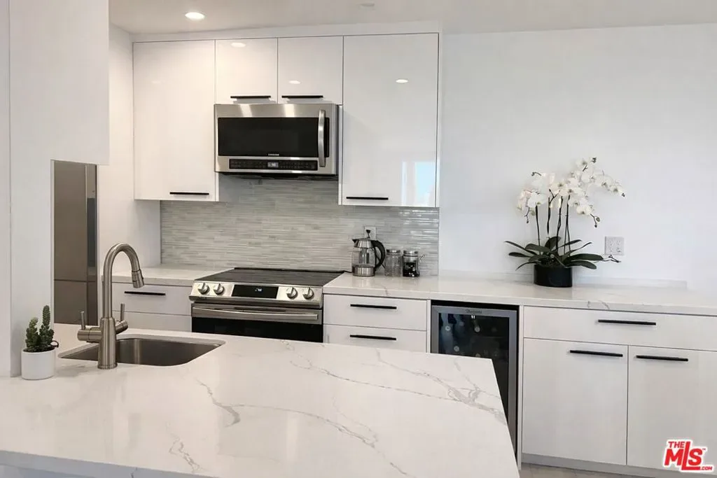 Stunning furnished, fully renovated 2-bedroom, 2-bath residence in a prime West Hollywood location. This spacious unit showcases high-end finishes throughout, including custom cabinetry, sleek modern kitchen, premium appliances, and elegant stone countertops. The open-concept living and dining area flows seamlessly to a stylish fireplace, built-in bar, and private patio, creating the perfect space for entertaining. The primary suite features a luxurious en-suite bath and generous closet space, while the second bedroom is well-proportioned with ample storage. The well-maintained, secure-access building offers a heated pool, covered assigned parking, and guest parking. Ideally located just moments from the Sunset Strip, Santa Monica Boulevard, dining, shopping, and nightlife. A rare opportunity to enjoy turnkey living in one of West Hollywood’s most desirable neighborhoods.