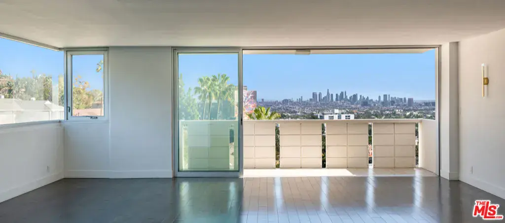 Set within the renowned Shoreham Towers, this expansive residence offers the largest layout available, positioned on the building’s most peaceful exposure with far-reaching views of Downtown Los Angeles and the Hollywood Hills. Designed for both comfort and hosting, the home features a generous living area, an integrated kitchen and dining space, and two bedrooms with two full baths. Wall-to-wall glass doors open to a private terrace, extending the interior outward and framing the city skyline. The kitchen is finished with premium appliances and stone surfaces, oriented to maintain sight lines across the main living space and beyond. The HOA covers all major utilities, including water, gas, electricity, and DirecTV. Residents enjoy white-glove services including 24-hour valet, staffed entry, pool, spa, fitness center, and on-site security, all moments from West Hollywood’s dining, shopping, and nightlife. Shown by private appointment.