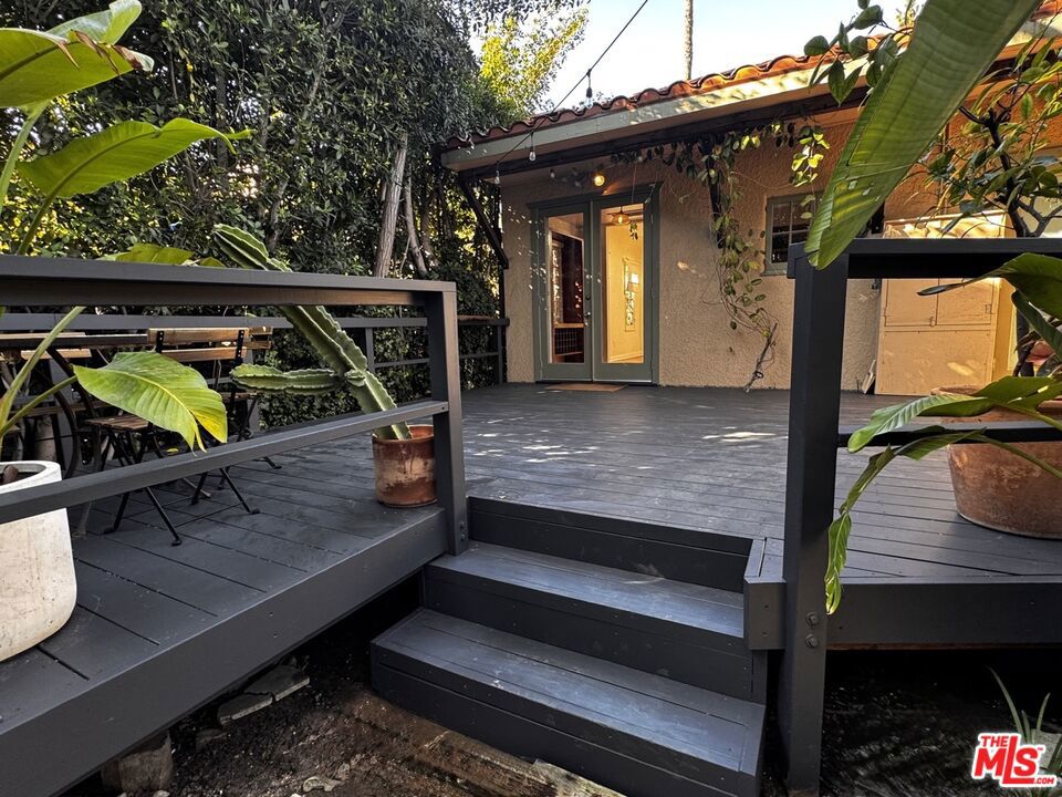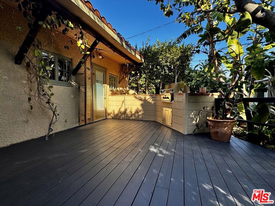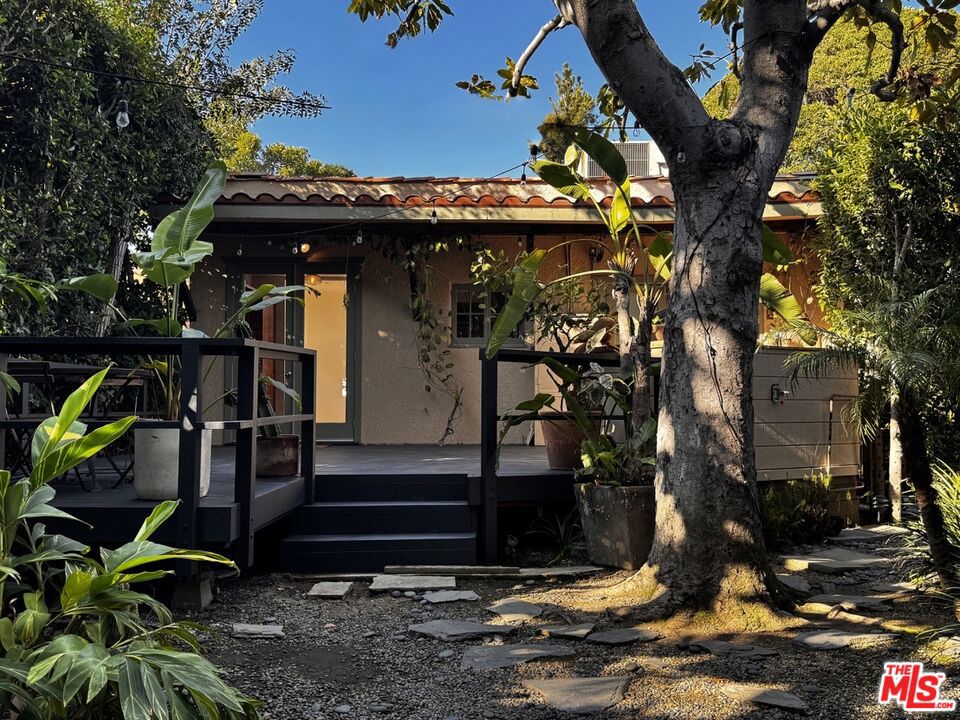 Spanish home with superb style and detail, situated in one of the best street of West Hollywood West .This 2 bedrooms, 2 bathrooms home offers wood floors throughout, living room with fireplace, large open dining area with spectacular skylight. The kitchen features Sub-Zero and Viking appliances. Garage converted to bonus room/office. Lush, tropical backyard with large deck, built-in bbq, and large wet bar, perfect for entertaining al fresco.EV hook up. A couple blocks away from high end boutiques on High Melrose and great restaurants on Robertson Ave.