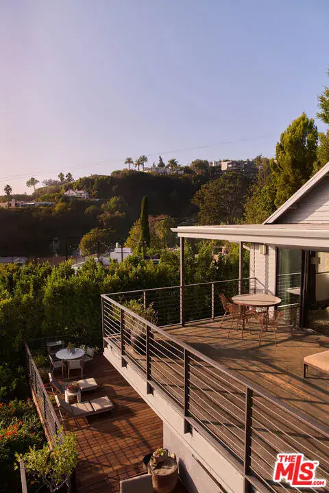 Set high above the city in the coveted Hollywood Hills, this three-story architectural retreat with Guest house is the epitome of refined Los Angeles living. Sprawling 180-degree panoramas stretch from the Downtown skyline to the Pacific Ocean and on the clearest days, Catalina Island graces the horizon. Tucked away behind lush, mature, and terraced landscaping on a private estate lot, the residence offers five sumptuous bedrooms and six baths, married with the serenity of a hideaway yet moments from the cultural energy of the city. Walls of glass dissolve the boundary between inside and out, while multiple terraces beckon the mild Southern California climate. The interiors glow with wide-plank wood floors, recessed lighting, and vaulted ceilings with exposed beams a warm, architectural counterpoint to ultra-modern finishes. At its heart, the chef’s kitchen dazzles: a restaurant-grade La Cornue range anchored by custom oak cabinetry, dual dishwashers and premium fixtures frame a space made for effortless entertaining. Adjacent open dining and living zones flow seamlessly to an outdoor lounge and expansive deck a rare luxury in the Hollywood Hills and an entertainer’s dream as the sun dips below the Pacific. A versatile TV room/den, complete with closets, offers the flexibility to serve as an additional bedroom ideal for guests or a private retreat. Upstairs, the primary suite unfolds like a resort retreat complete with walk-in closet, spa-inspired bath, and private terrace with sweeping views. Just off this level, the second terrace features built-in outdoor heaters perfect for year-round comfort while enjoying the breathtaking panorama. The third level presents a purposeful family room, wet sink and fridge for convenience, plus three uniquely finished guest bedrooms each with their own ensuite bath and generous storage. Enjoy ultimate convenience with a full laundry room downstairs and an additional laundry area complete with washer and dryer tucked neatly into the upstairs bathroom. Step outside and live as though on vacation every day: multiple terraces and patios, lounging zones, a shimmering pool and spa all arrayed to capture light and view. With the smart iAqualink system, pool and spa temperature and settings are controllable remotely pure ease and the automated fully retractable pool cover adds an extra layer of conveience and saftey. Two motorized sun-shades elegantly manage light and privacy throughout the day. Underpinning the beauty is serious forward-thinking infrastructure. Fully paid $30,000+ Tesla solar panels promote eco-conscious living while lowering energy cost. A whole-house water filtration system, whole-house fan, in-wall flat screens (three), Sonos sound zones (7 indoor, 4 outdoor), Nest cameras, Rachio irrigation system and a 240-volt NEMA 14-50 outlet in the garage for EV charging all converge in a home that’s as smart as it is chic. A detached guest structure includes a full kitchen, bath and its own courtyard ideal for visiting friends, extended stays or a boutique home office. This is more than a home it’s a statement of mega-design, technological intelligence and panoramic beauty. With its vantage from the heights of Los Angeles, it delivers luxury, sustainability, privacy and spectacle in equal measure. Truly a rare opportunity to own a hillside haven with views from downtown to the sea.