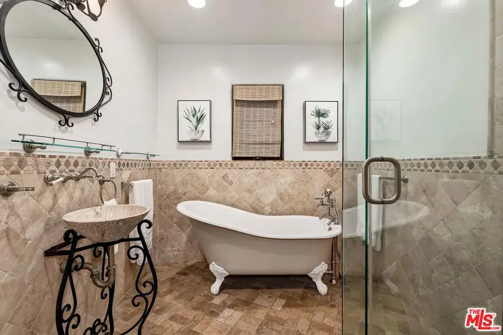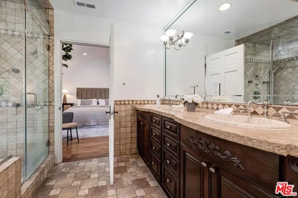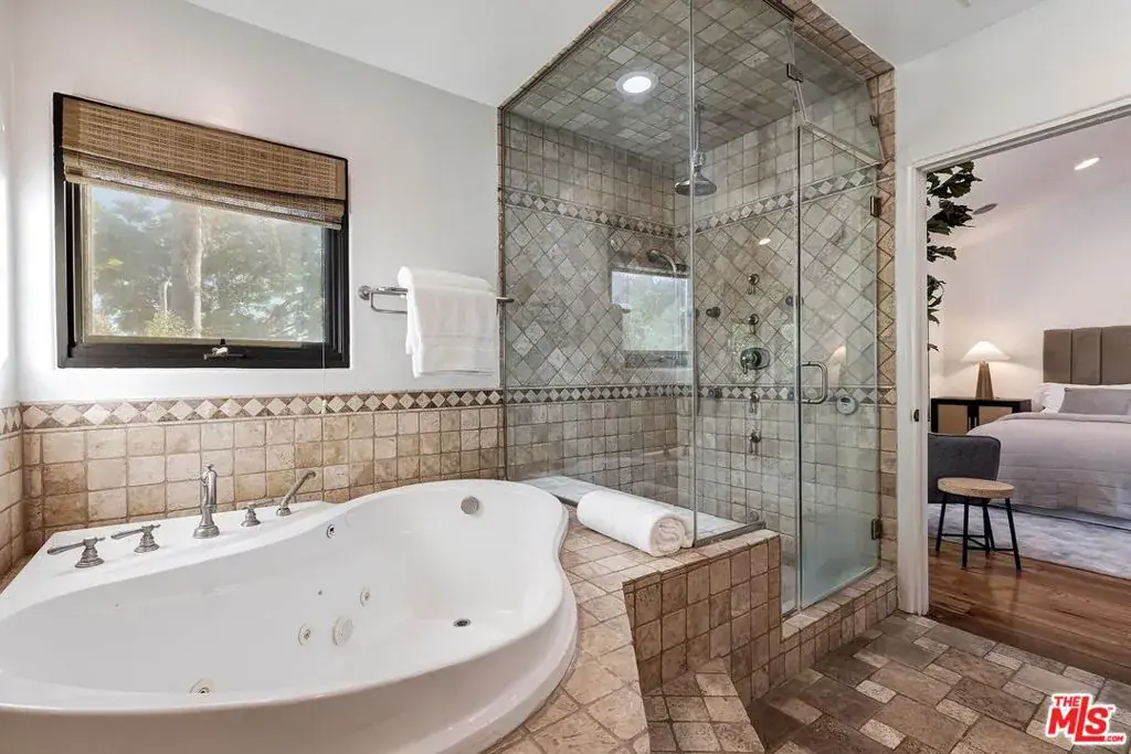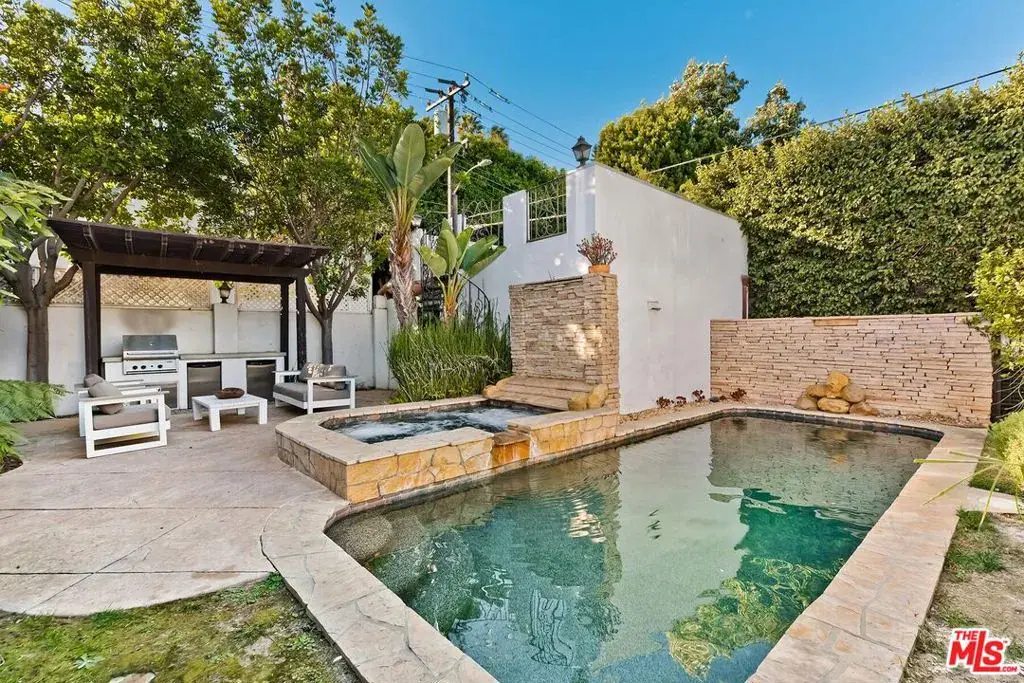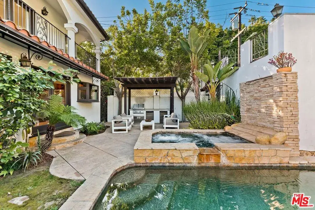 Prime West Hollywood West! This lovely remodeled two story, Spanish house in West Hollywood is proximate to many shops, restaurants and grocers. Enter through the gated and hedged courtyard into a bright and inviting three bedroom, two bath home with a large dining room and expansive living room with fireplace. The beautiful kitchen with stainless steel appliances leads to a resort style backyard complete with pool, spa and outdoor kitchen. The primary suite encompasses the entire second floor and has a large balcony looking out to the Hollywood Hills. The vaulted ceiling, walk in closet and lux bath with steam shower and dual sinks make perfect the private retreat. Two additional bedrooms and a full bath are located downstairs. Wood floors and wonderful details throughout. Rarely found in this neighborhood, the property includes a usable two-car garage.