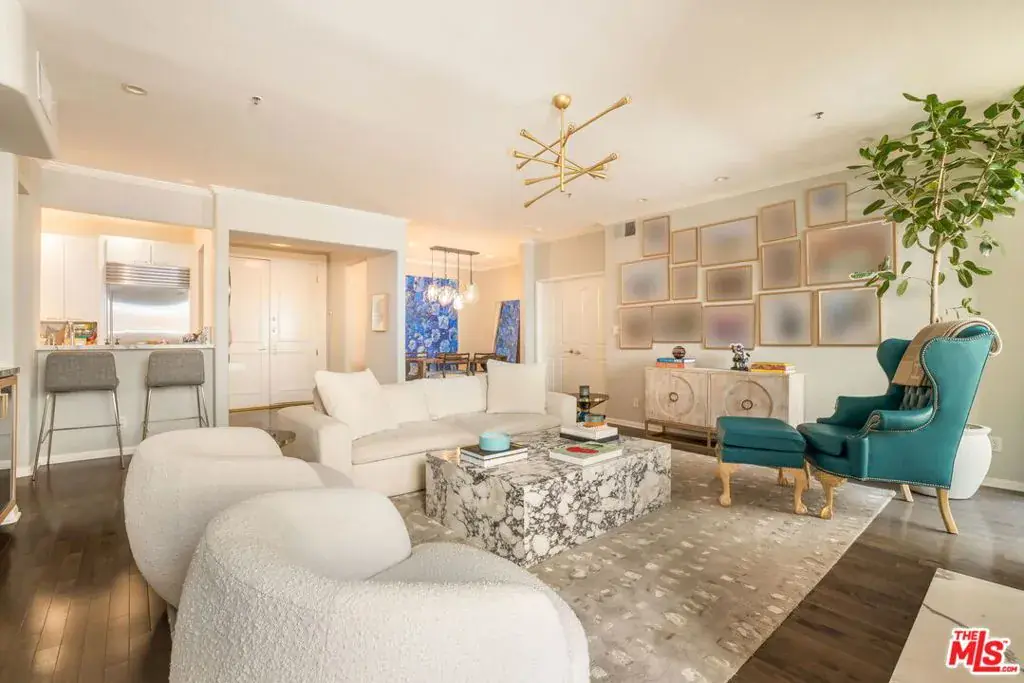 Experience refined living in this elegantly furnished 2-bedroom, 3-bath residence offering 1,464 square feet of meticulously designed space. The open-concept floor plan is graced with high ceilings and elegant hardwood floors that flow seamlessly throughout, creating an atmosphere of timeless sophistication. The custom chef’s kitchen features Carrera marble countertops, a breakfast bar, and premium Thermador appliances that flows into the open dining room. The inviting living area centers around a stunning marble fireplace, while twin French doors open to two private terraces, ideal for morning coffee or evening relaxation. The primary suite is a serene retreat with a spa-like bathroom, complete with a built-in vanity, soaking tub, and a spacious walk-in closet. A full in-unit laundry room and generous storage provide added convenience. This full-service luxury building offers a wealth of amenities, including a 24-hour concierge and security, heated pool, fitness center, sauna, meeting room, guest parking, EV charging station and a tranquil courtyard for residents to unwind. Two side-by-side parking spaces in the gated subterranean garage complete this remarkable offering.Perfectly combining elegance, comfort, and modern convenience, this home redefines luxury condo living with walkability to the best restaurants and private clubs West Hollywood and Beverly Hills has to offer.