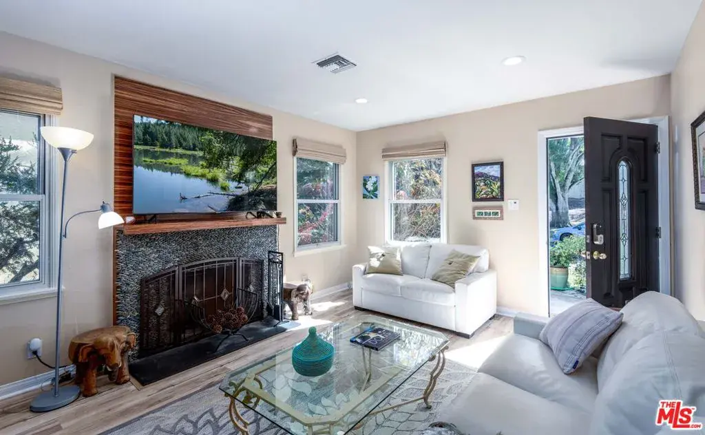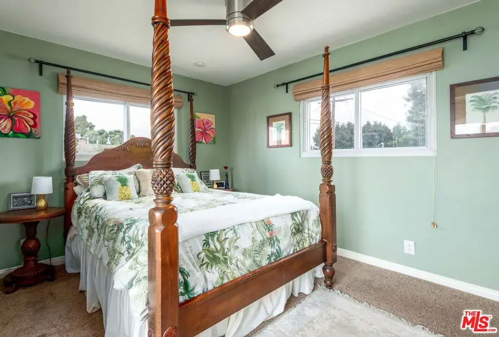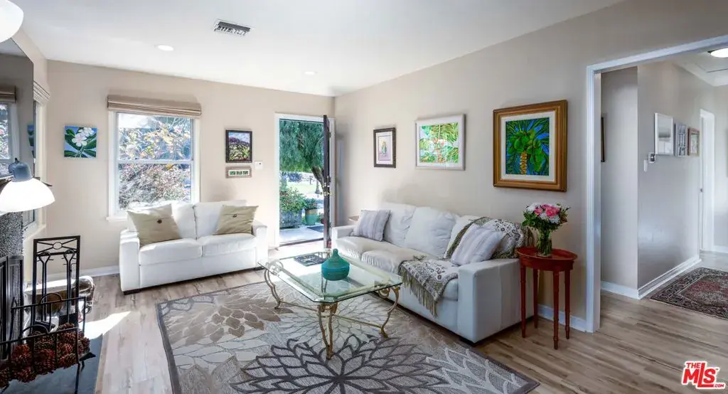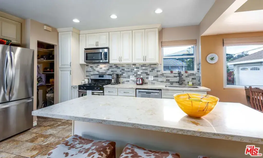Located adjacent to the Westchester Golf Course on a non-through street with greenbelt views, this delightful home with vibrant landscaping is ideal for those who desire space and functionality. Past the canopy of the graceful California pepper tree step into an inviting living room featuring luxury vinyl plank flooring and custom fireplace with decorative stonework and zebrawood mantel. The modern kitchen features quartz countertops, stylish tile backsplash, and stainless-steel appliances. The space is anchored by a central island with breakfast bar that’s ideal for entertaining or casual dining. 4 bedrooms and 2 full bathrooms are downstairs, while upstairs is the private ensuite with its own balcony…perfect for relaxing or enjoying the fresh air and sunshine. The enchanting backyard boasts a variety of plants and trees, as well as a separate fruit and vegetable garden. Additional highlights include copper plumbing, tankless water heater, soundproof windows, automatic sprinklers, and 2-car garage. With easy access to beaches, LAX, and numerous shopping and dining destinations, this is an exceptional find in Westchester.