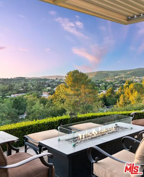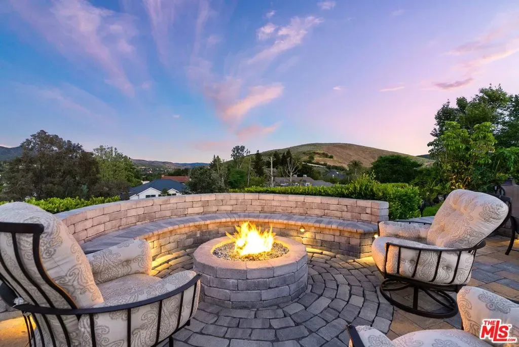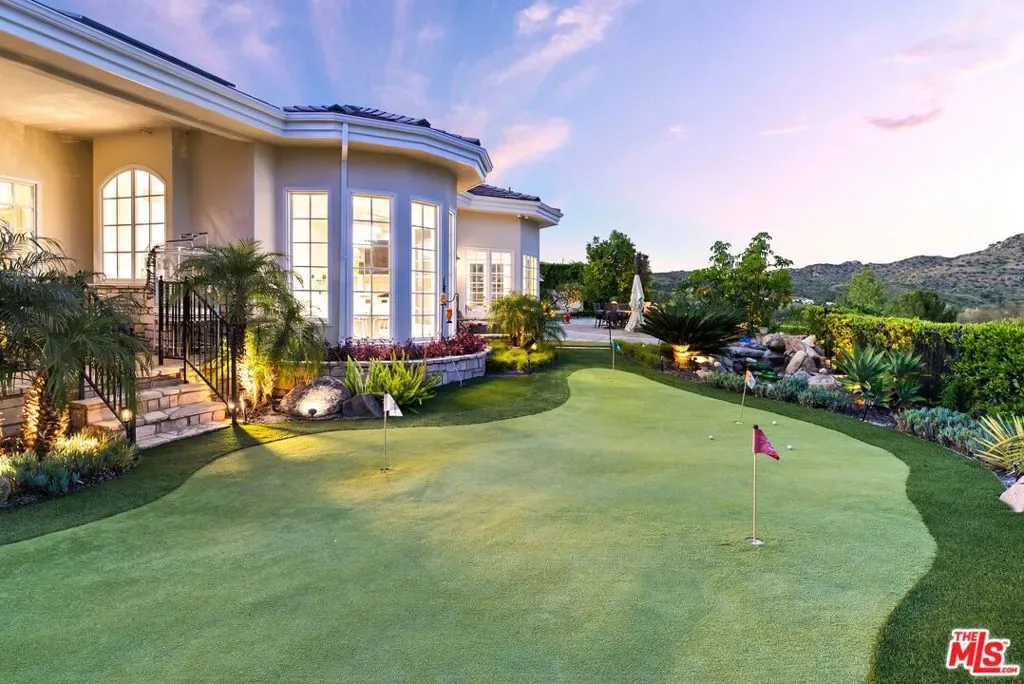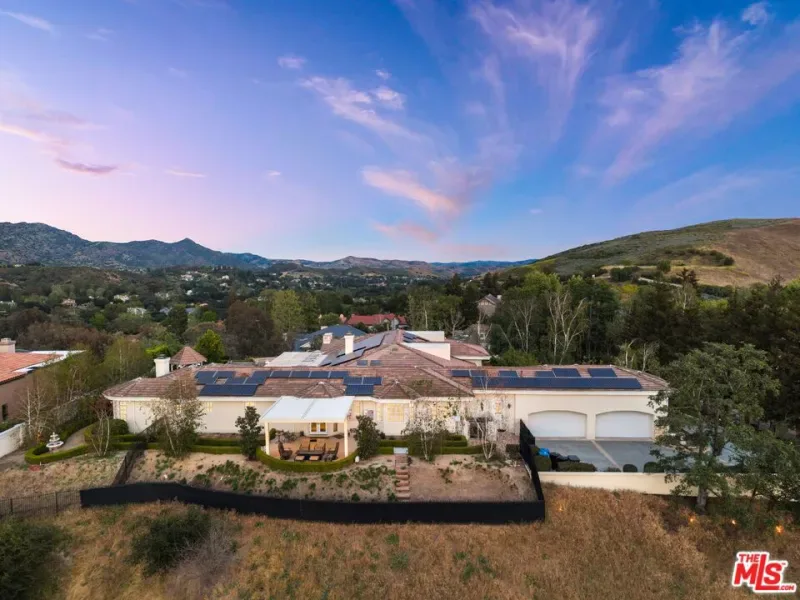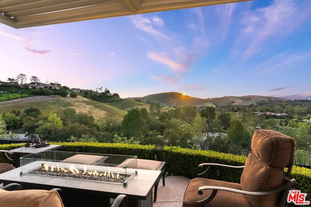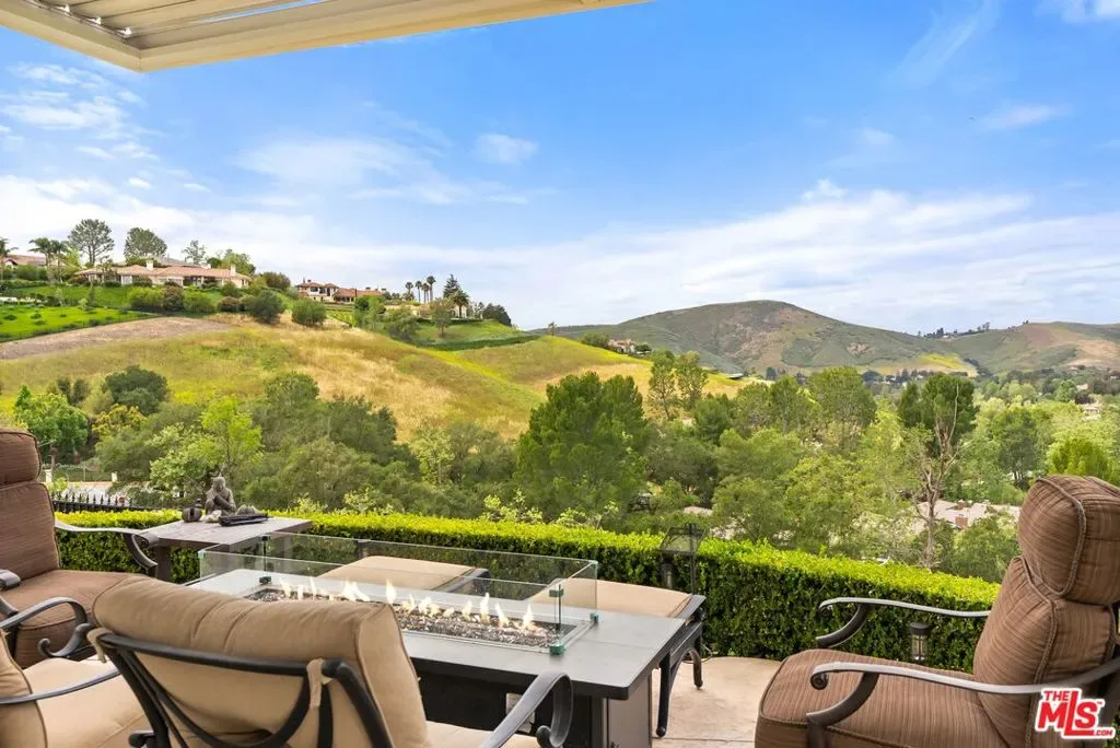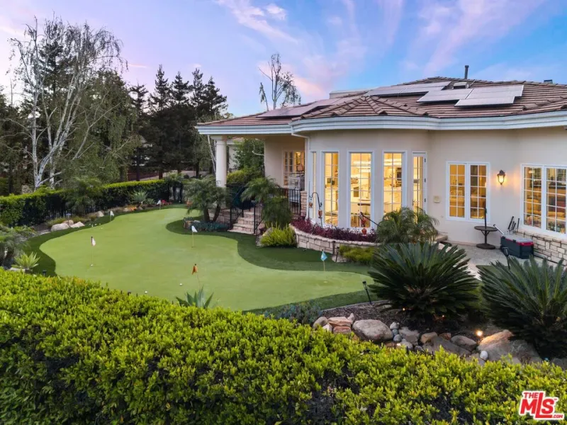 North Ranch Private Promontory. Single level. Thoughtfully reimagined. Tucked behind it’s own gates atop a rare 1.67-acre hilltop, this North Ranch estate sits high above the street, privately situated from its elevated vantage point, the residence captures both sunrise and sunset horizons, an everyday balance of seclusion and openness just moments from North Ranch Country Club. As you ascend the drive, the home reveals itself with quiet confidence. You pass the welcoming front entry and continue toward the west-facing garage, discreetly positioned to preserve both symmetry and privacy. Through the front door, a light-filled foyer opens the experience, formal living ahead, library/office to the left, detailed with rich wood bookcases, cabinetry and paneling, coffered ceiling and leaded glass. To the right, the formal dining room connects through a butler’s pantry to the kitchen, designed for both beauty and function. The chef’s kitchen anchors the home’s entertaining spaces with Cristallo quartzite surfaces, four ovens, dual Sub-Zero refrigeration, and dual dishwashers. Flow continues effortlessly into the family room and a striking backlit bar, forming a cohesive gathering environment defined by texture, proportion, and light.The primary suite offers a calm retreat with a spa-inspired bath featuring a steam shower, soaking tub, and custom cabinetry. Secondary bedrooms extend along the private hall, each balancing comfort and openness with thoughtful separation from public spaces.Outdoors, the estate unfolds in scale and intention, expansive and multiple covered sitting areas create generous entertaining zones on both sunrise and sunset sides of the property. The landscape is layered for gathering and retreat, featuring generously sized pool and spa, built-in BBQ, flowing pond, 2 natural gas fire pits (sunrise side and sunset side), and an oversized putting and chipping green surrounded by mature greenery. Substantial infrastructure upgrades complete the property, including 107 owned solar panels, new roof, whole-home backup generator, extensive security systems, keypad access, and dual EV charging in the garage. Elevated. Private. Architectural. A single-level North Ranch estate reimagined for modern California living.