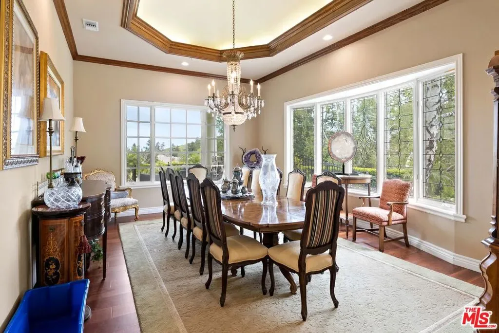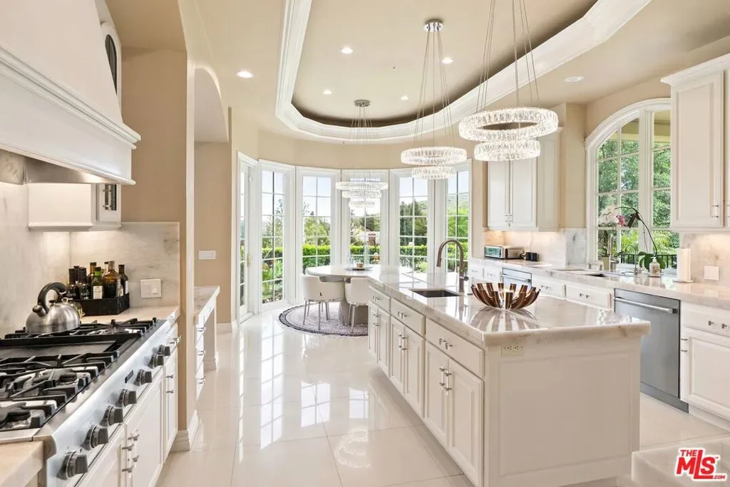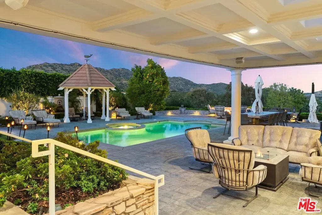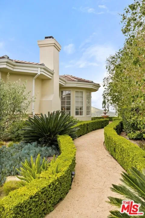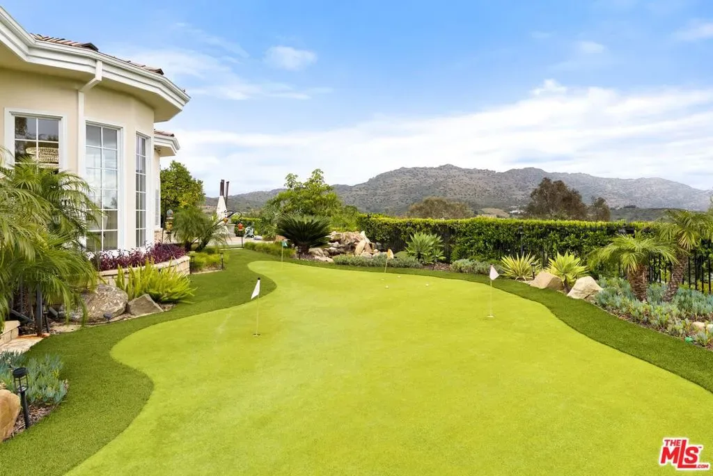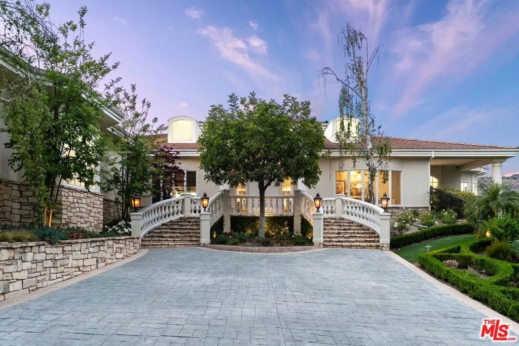 North Ranch Private Promontory. Single level. Thoughtfully reimagined. Tucked behind it’s own gates atop a rare 1.67-acre hilltop, this North Ranch estate sits high above the street, privately situated from its elevated vantage point, the residence captures both sunrise and sunset horizons, an everyday balance of seclusion and openness just moments from North Ranch Country Club. As you ascend the drive, the home reveals itself with quiet confidence. You pass the welcoming front entry and continue toward the west-facing garage, discreetly positioned to preserve both symmetry and privacy. Through the front door, a light-filled foyer opens the experience, formal living ahead, library/office to the left, detailed with rich wood bookcases, cabinetry and paneling, coffered ceiling and leaded glass. To the right, the formal dining room connects through a butler’s pantry to the kitchen, designed for both beauty and function. The chef’s kitchen anchors the home’s entertaining spaces with Cristallo quartzite surfaces, four ovens, dual Sub-Zero refrigeration, and dual dishwashers. Flow continues effortlessly into the family room and a striking backlit bar, forming a cohesive gathering environment defined by texture, proportion, and light.The primary suite offers a calm retreat with a spa-inspired bath featuring a steam shower, soaking tub, and custom cabinetry. Secondary bedrooms extend along the private hall, each balancing comfort and openness with thoughtful separation from public spaces.Outdoors, the estate unfolds in scale and intention, expansive and multiple covered sitting areas create generous entertaining zones on both sunrise and sunset sides of the property. The landscape is layered for gathering and retreat, featuring generously sized pool and spa, built-in BBQ, flowing pond, 2 natural gas fire pits (sunrise side and sunset side), and an oversized putting and chipping green surrounded by mature greenery. Substantial infrastructure upgrades complete the property, including 107 owned solar panels, new roof, whole-home backup generator, extensive security systems, keypad access, and dual EV charging in the garage. Elevated. Private. Architectural. A single-level North Ranch estate reimagined for modern California living.