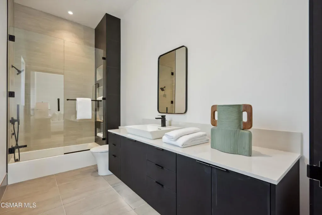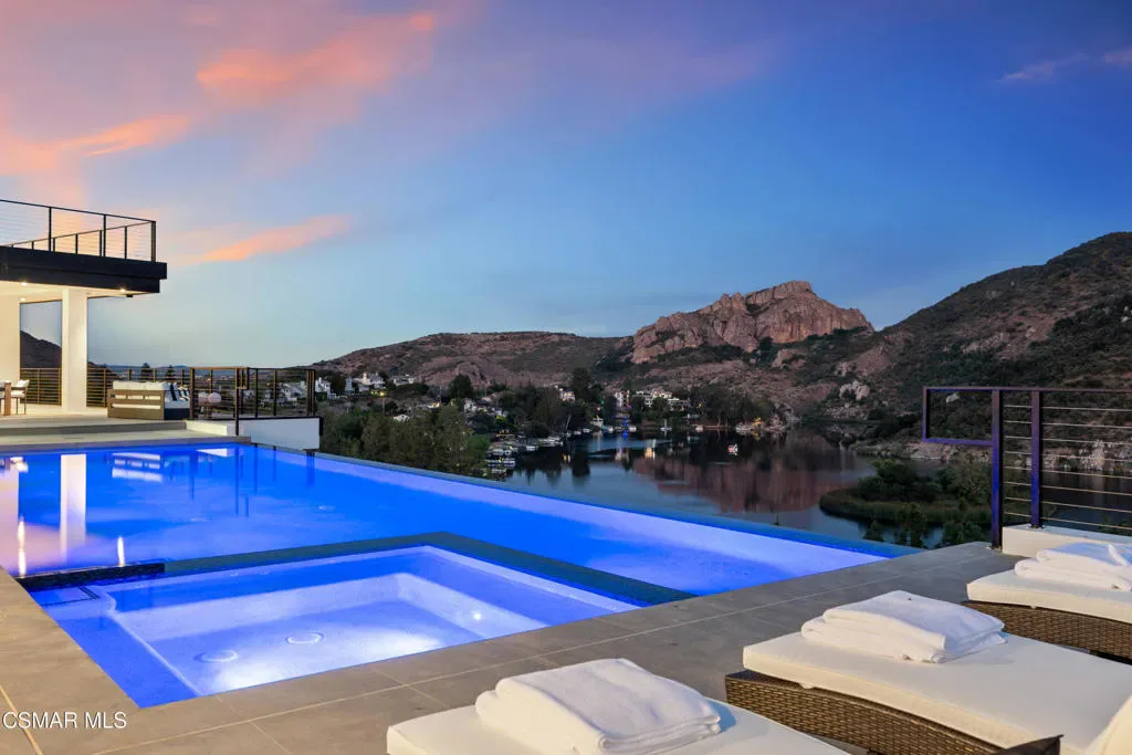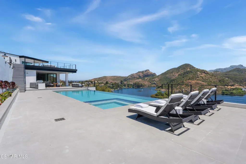 Introducing ”LAKEVUE ESTATE” – 461 Lake Sherwood Drive–a ground-breaking New Construction contemporary masterpiece, set to redefine lakefront luxury. Spanning 8,446 sq. ft. and nestled on a 1.18-acre lot, this stunning home boasts panoramic views of Lake Sherwood and the surrounding mountains, offering an unparalleled lifestyle experience with exclusive lake use rights.Designed for both living and entertaining, the fabulous floor plan seamlessly blends indoor and outdoor spaces. The home features expansive covered and open deck areas, perfect for taking in the breathtaking views. A custom 16 ft. x 46 ft. pool and spa enhance the outdoor living experience, while the private driveway ensures a secluded retreat.Inside, you’ll find every amenity imaginable. The home features a luxurious primary suite with a large private balcony and direct stair access to the pool. The primary bedroom showcases a stunning cornerless glass wall with pocketing glass doors that seamlessly disappear into the walls, creating an uninterrupted connection to the outdoors. Three additional secondary bedroom suites and a fully equipped ADU–complete with its own bedroom, kitchenette, and full bath–offer comfort and flexibility. With 7 full baths, 1 powder room, a gourmet kitchen and butler’s kitchen, and a gym with stunning views, every detail is designed for elevated living. Sliding pocket doors throughout create seamless transitions between spaces, allowing for the ultimate open-concept flow.With fireplaces in the family room, living room, and primary suite, as well as an elevator for convenience, this home is built for those who appreciate modern luxury. With exclusive lake use rights to Lake Sherwood, you’ll enjoy activities such as boating, paddle-boarding, and more–offering a life of unparalleled luxury in one of Southern California’s most coveted locations.