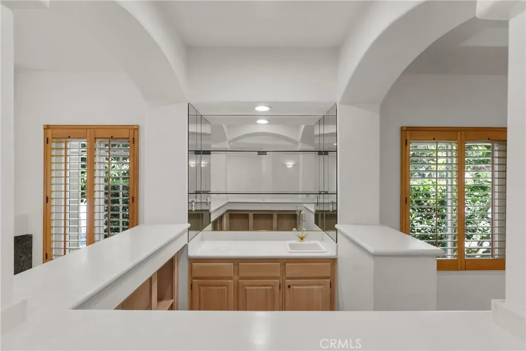 Located in prestigious Westlake Village is this gorgeous single story Braemar North Ranch home, situated on a large corner lot. A functional open concept floor plan makes this home comfortable for day to day living and perfect for entertaining. The beautiful entryway is open to the living room with fireplace, wet bar and formal dining room. The marble walkway takes you to the large, bright kitchen with breakfast nook overlooking the peaceful backyard. The spacious family room has a cozy raised hearth fireplace, perfect for gathering with friends and family or snuggling up with a glass of wine. Down the hall is a convenient guest bath, a fabulous, private primary suite including a large bedroom and closet and direct access to the backyard. The primary bath has a walk-in frameless shower, large soaking tub, dual sinks, skylight, private commode and a second walk-in closet. The other three bedrooms and full bath with dual sinks complete this beautiful home. The laundry room is conveniently located at the garage entrance. Soaring vaulted ceilings, custom wood plantation shutters, dual pane windows throughout and recessed lighting are just a few of the additional features. There is storage in the attic with a pull down ladder. Conveniently located near restaurants, shopping and entertainment.