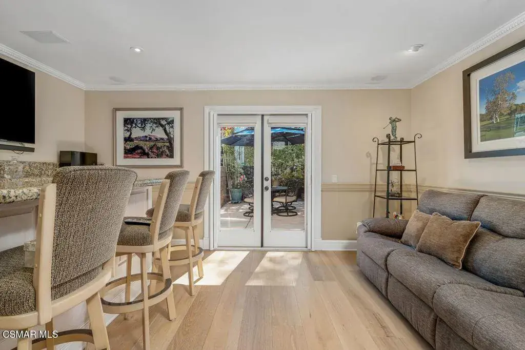 Discover the rare elegance of Club View Townhomes, a private enclave nestled adjacent to the prestigious North Ranch Country Club, where luxury, lifestyle, and location converge. Step into a beautifully upgraded home that exudes warmth and sophistication, featuring rich 9-inch wide real wood plank flooring and custom plantation shutters throughout. The remodeled kitchen is a chef’s dream, with sleek granite countertops and custom cabinetry that make both everyday living and entertaining effortless. Originally a three-bedroom layout, this home now boasts a stylish den with a walk-in wet bar which is perfect for hosting or relaxing in style. And here’s what truly sets it apart: the only model in the community offering three full bathrooms, delivering unmatched convenience and value. Retreat to the expansive primary suite, complete with a cozy sitting area and a spa-inspired bath adorned with custom cabinetry and luxurious stone finishes. A built-in office in the loft provides the ideal work-from-home setup, blending productivity with comfort.Enjoy seamless indoor-outdoor living with two private patios and a spacious deck off the living room–your personal oasis for morning coffee or evening gatherings. With a separate laundry room and direct-access garage, every detail has been thoughtfully designed for ease and functionality. Located in one of Westlake Village’s most sought-after neighborhoods, this home is a rare gem, and, a unique opportunity to own a residence that truly has it all.Don’t miss your chance to experience elevated and upscale living in a setting that’s second to none.