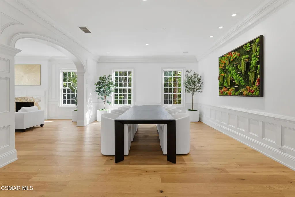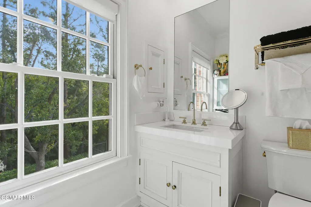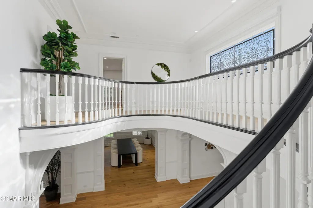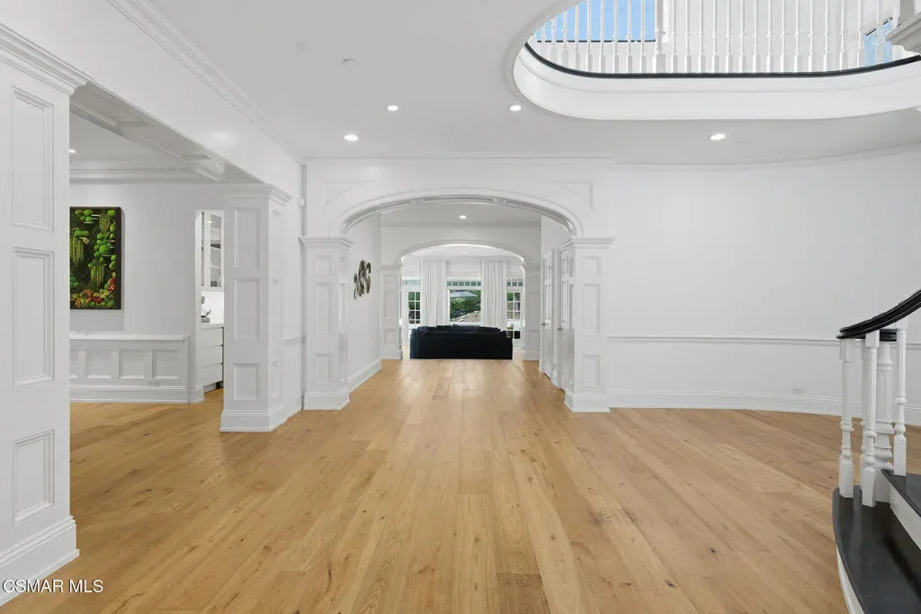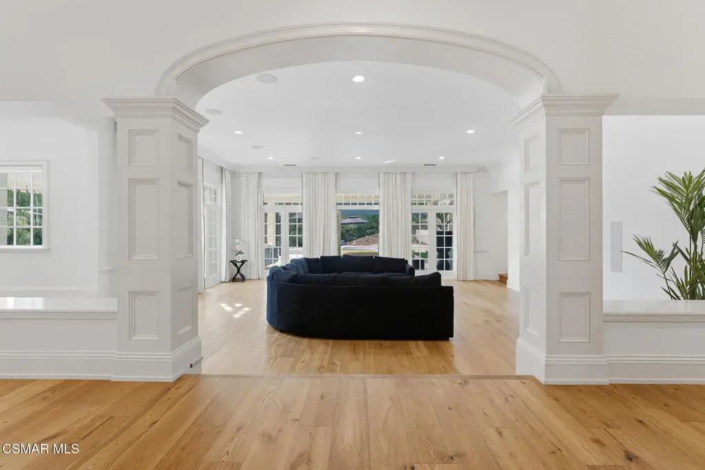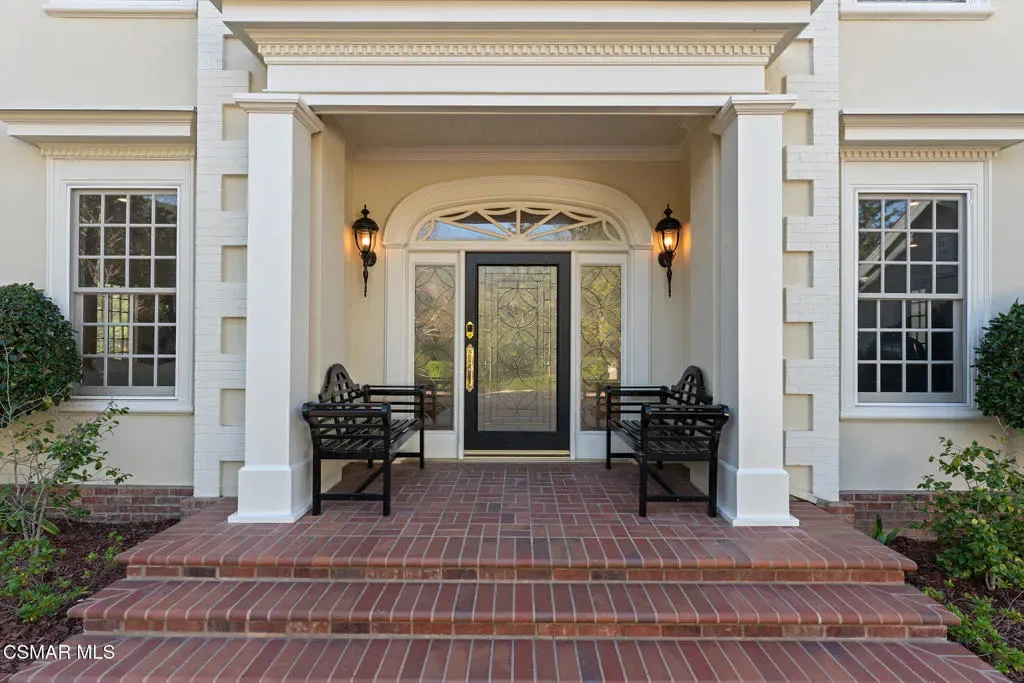 Welcome to 517 Lakeview Canyon Road. Set behind guarded gates in the prestigious enclave of North Ranch Country Club Estates, this one-of-a-kind East Coast traditional inspired estate offers an extraordinary level of privacy, scale, and refinement. Accessed through its own private gates and bridge across a tranquil, flowing stream, the property unfolds across 10 acres of lush grounds. Spanning 8,890 square feet, the residence has been completely remodeled and thoughtfully updated. The home is distinguished by tall ceilings that bring a sense of openness and architectural drama to every room. Multiple fireplaces serve as elegant focal points. Custom crown molding highlights the craftsmanship and attention to detail, while beautiful wood flooring throughout lends warmth and continuity. The kitchen is both refined and functional, anchored by a substantial marble center island that serves as a striking focal point for the space. Marble accents are carried throughout, adding a sense of understated elegance. A custom Sub-Zero refrigerator integrates seamlessly into the cabinetry, while professional grade Viking appliances elevate the kitchen’s performance. The home features six generously sized bedrooms all with en-suite bathrooms and walk-in closets, as well as two additional bathrooms. The property also features four additional separate rooms that can be used as an office, study, media room, playroom, all with endless possibilities, each room designed with elevated finishes and timeless appeal. Grand yet welcoming living spaces flow seamlessly throughout. The backyard has been fully reimagined, offering resort-style outdoor living with expansive lawns, serene views, and multiple spaces. Features include a built in state of the art projector system, custom surround sound throughout the property, a built in hidden tv, and ceiling heaters. Every element of the property reflects intentional design and meticulous craftsmanship. Equipped with state-of-the-art security and comprehensive smart-home technology, including Control4 and Creston functionality, the estate delivers modern convenience without compromising its traditional character. The property also features its own orchard with 50 fruit trees. Rarely does a property combine this level of privacy, acreage, architectural presence, and turnkey condition behind guard gates. Ideally located, the home offers convenient access to award-winning schools, top-tier shopping and dining, parks, beaches and easy freeway access. A truly exceptional offering – an irreplaceable North Ranch estate. Close to