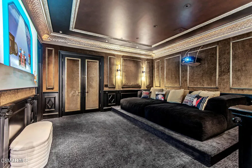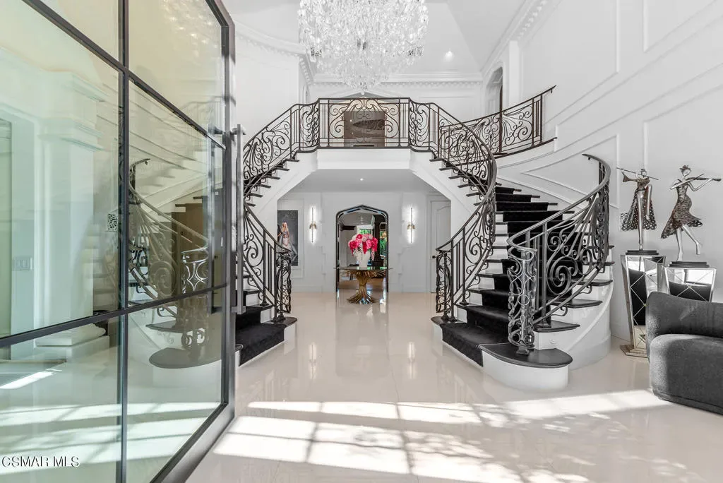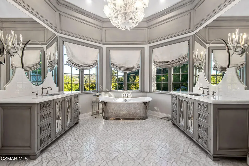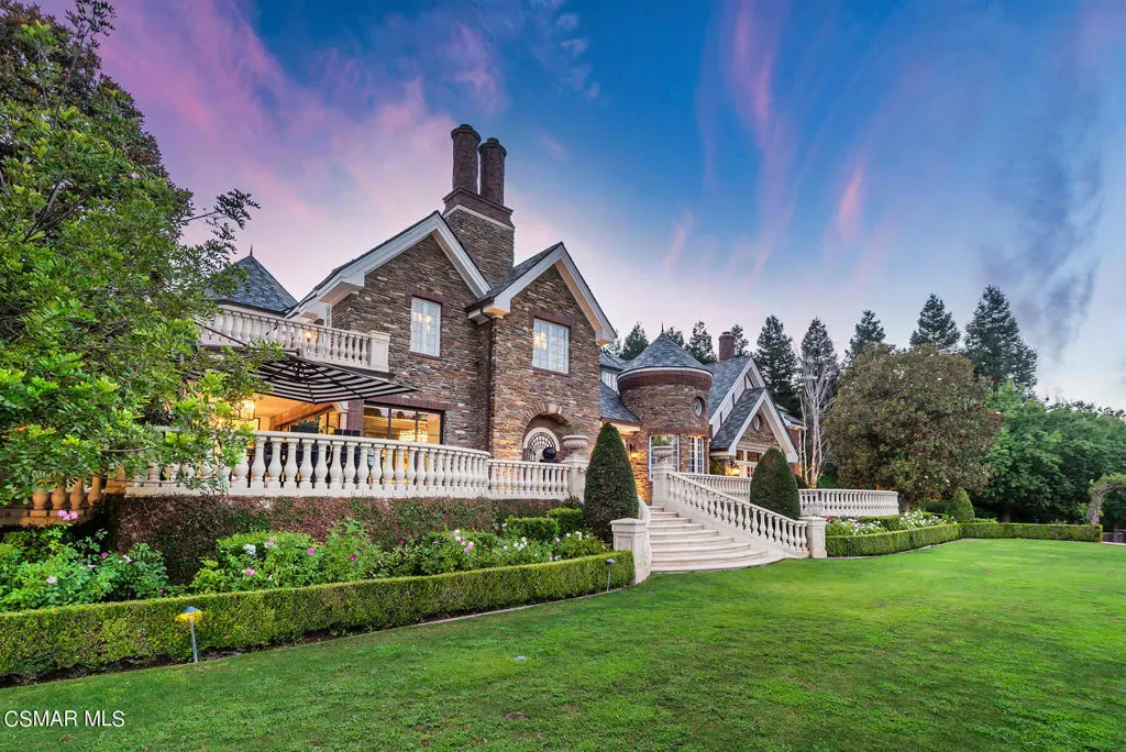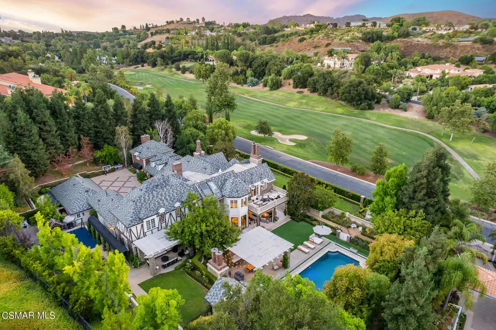 World Class Landmark Estate in guard gated North Ranch Country Club Estates ! Exquisite and completely re-imagined contemporary English Manor with panoramic fairway and mountain views! Designed and built with unparalleled quality, detail, and craftsmanship. Absolutely magnificent! Interior features include a grand two story entry with sweeping dual staircases, state of the art home cinema, billiard/game room, all new walk in wine cellar, and so much more. No detail or expense was spared to artistically craft this one of a kind showplace. The resort quality grounds are remarkable. Custom pool and spa, fireplace, outdoor kitchen, formal gardens and lush manicured lawns. All with total privacy and views! Other important features include privately gated entry, garages for 6 cars, a detached office with guest house above with separate entrance. There is also another detached guest/pool house with adjacent catering kitchen. One of Southern California’s most epic custom masterpieces!