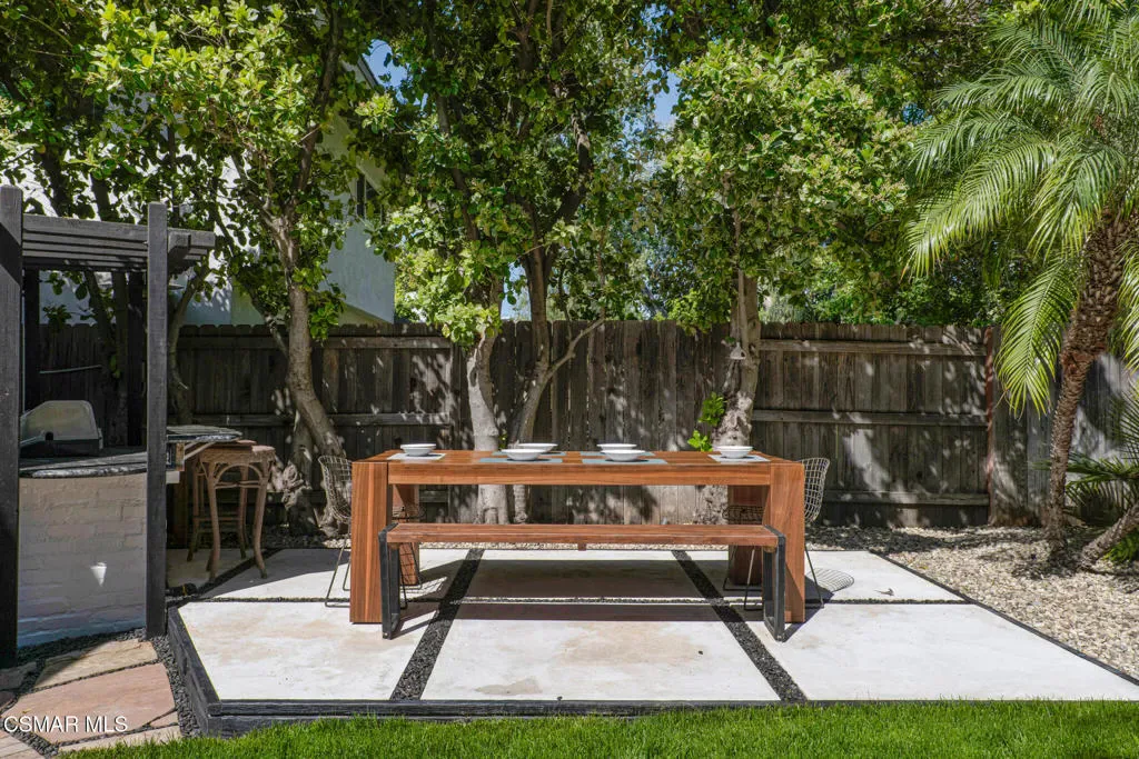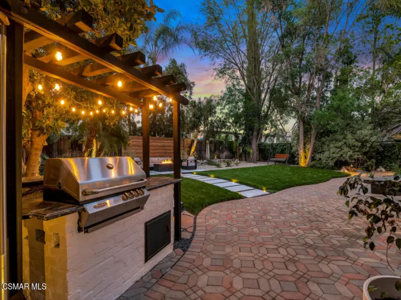 Discover the epitome of Westlake Village Living in this fully reimagined and expanded custom 220 model boasting 2,712 square feet. This home is perfectly situated on one of the largest quietest and most private lots in coveted First Neighborhood. This stunning home blends sophisticated modern design with unparalleled outdoor living. the interior boasts gorgeous wide -plank walnut floors throughout, leading to an open concept chef’s kitchen featuring sleek shaker cabinetss and a generous center island designed for entertaining. The entire rear portion of the home is an open concept great room with center island an dining room which opens through French Doors offering seamless indoor, outdoor flow. The flexible floorplan includes a sought after downstairs bedroom/office. The stunning landscaped grounds are are a private oasis, featuring an outdoor kitchen/barbque area a spacious dining terrace, a custom firepit area, and calming water features. The redesigned primary suite has been expanded to include an oversized spa like primary bathroom with a double shower with body jets, a jetted soaking tub and double vanity. The suite also features a large fully organized walk in closet. The home has been meticulously maintained including a recently replaced HVAC System. Enjoy a truly upgraded lifestyle with access to community greenbelts, pool and clubhouse, all just moments away from local amenities such as the Stonehaus, Westlake Village Lake, the Landing and the Westlake Promenade….